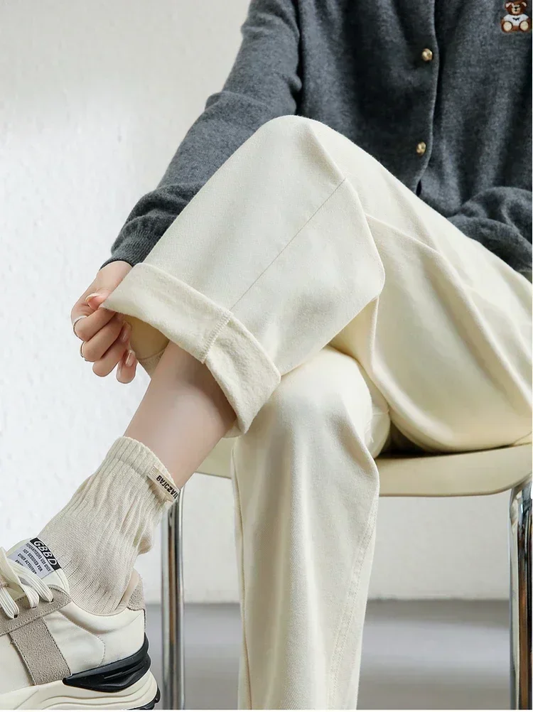 These jeans are more than just a piece of clothing – they’re an investment in comfort and style. Crafted from premium cotton, they offer warmth without the bulk of heavier fabrics. The high-waist cut hugs your waist comfortably while elongating your legs, creating a flattering silhouette that’s perfect for any occasion. The thick denim is soft yet structured, offering a snug, tailored fit that keeps you feeling confident throughout the day.