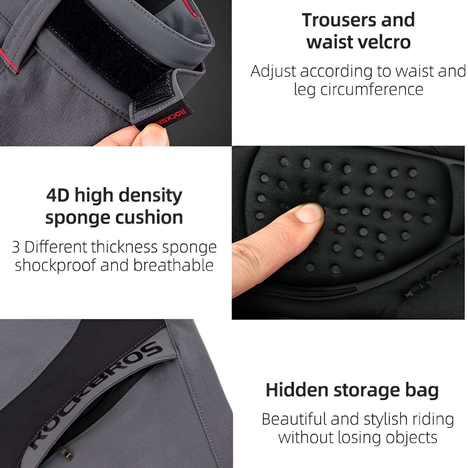 Crafted from a premium blend of 90% nylon and 10% spandex, these shorts offer lightweight stretch and durability. The ergonomic 3D cut follows your natural body shape to reduce friction and enhance mobility. With a 4D sponge cushion built into the inner liner, you’ll experience next-level support during long rides without the discomfort of standard padding. The inner shorts are fully removable, so you can wear the outer shell casually or on other outdoor adventures. Smart design touches like large, easy-access pockets and solid streamlined stitching complete the experience.