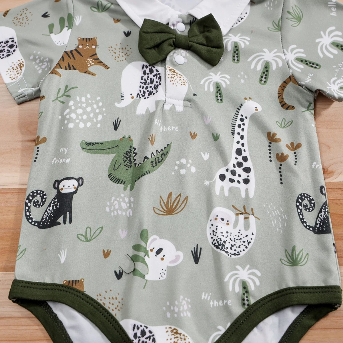 Made from a soft and breathable blend of 97% polyester and 3% spandex, this outfit keeps your baby comfy and cozy all day long. The cartoon animal print adds a playful twist to the sophisticated design, while the Peter Pan collar and buttoned front give it a classic, gentlemanly flair. The knit fabric stretches gently for a snug, flexible fit that moves with your baby—no fuss, just fashion.