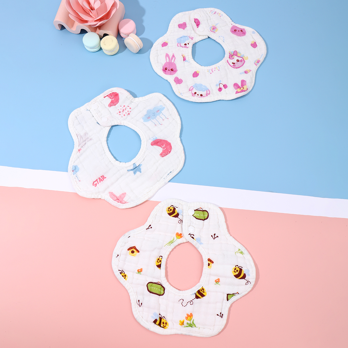 This bib isn’t just about function – it’s a fashion-forward essential for stylish tots. With adorable cartoon patterns and a petal-inspired shape, it adds a playful touch to any outfit. More than just cute, its clever 360° rotation means you can adjust and rotate the bib when one side gets wet, extending wear throughout the day without needing a change. That’s less laundry for you and more comfort for baby.
