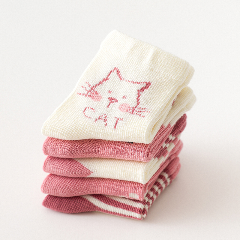 Wrap your baby girl’s tiny feet in soft, playful comfort with this 5-pair set of cartoon cat print toddler socks. Designed to keep little toes warm during the cooler months, these mid-tube socks are both practical and irresistibly cute. Each pair features a sweet cat pattern and fun stripes, making sock time something your child will look forward to. Whether she’s crawling, taking her first steps, or already on the move, these socks are made to stay put while providing warmth and comfort all day long.