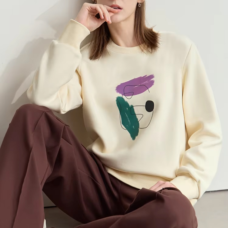 Stay cozy and chic this winter with our artistic abstract print fleece sweatshirt. Designed for the modern woman, this casual round neck pullover combines warmth, style, and a hint of creative flair. Its soft fleece fabric, thick texture, and loose fit make it perfect for layering or wearing on its own. Whether you’re heading to the office, meeting friends, or enjoying a relaxed day at home, this sweatshirt is your ideal cold-weather companion.