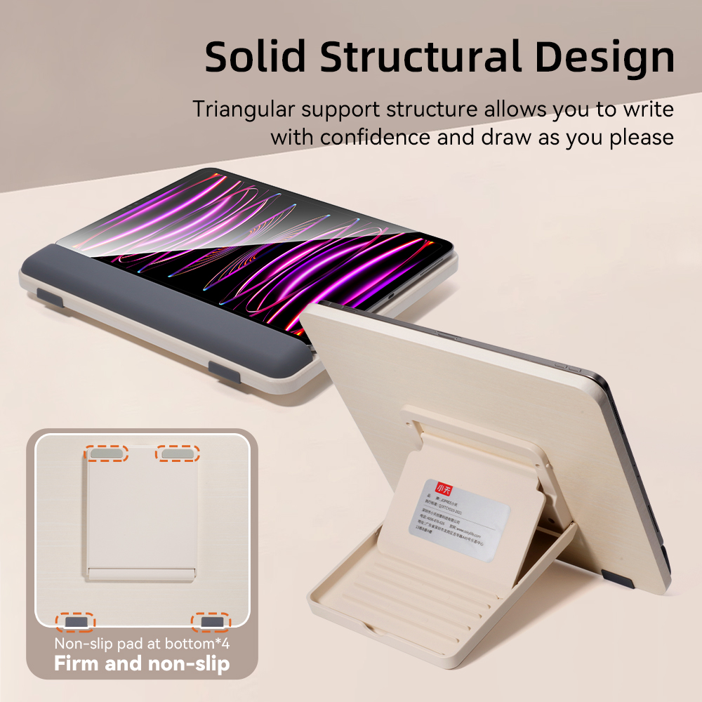 This stand isn’t just functional—it’s built with your comfort in mind. Rounded corners ensure no sharp edges, while the upholstered surface keeps your devices from feeling cold to the touch during winter. The non-slip booster pad enhances grip, while the triangular structure guarantees stability, making it perfect for any scenario. Whether you’re sketching on your Samsung tablet or attending virtual meetings on your laptop, this stand adapts to your needs.