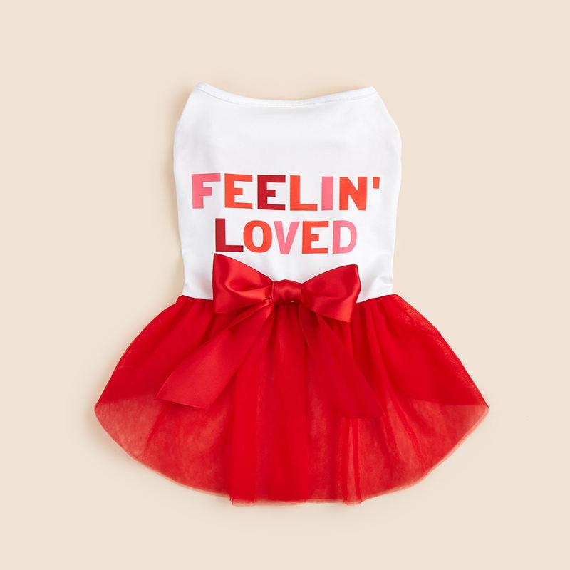 Transform your furry friend into the star of the show with this adorable small dog dress! Designed with an eye-catching “FEELING LOVED” print, a chic bowknot, and layers of soft tulle, this costume is the perfect combination of comfort and fashion. Whether it’s a casual outing, a party, or a photoshoot, this dress ensures your pet will turn heads and feel pampered. It’s not just a costume; it’s a declaration of love for your precious companion.