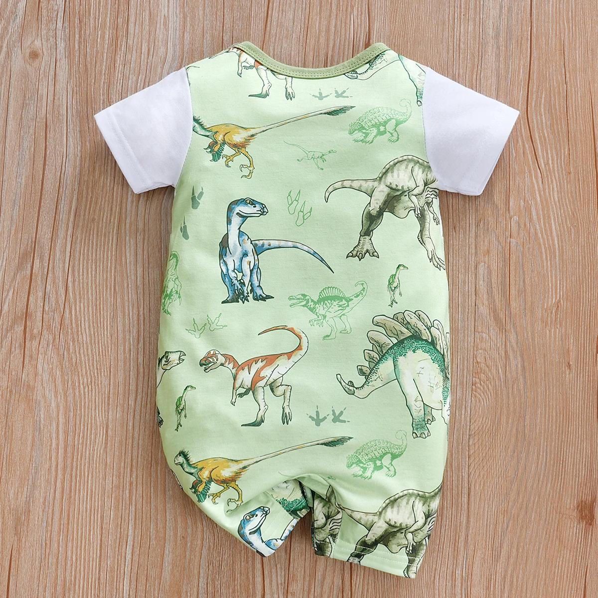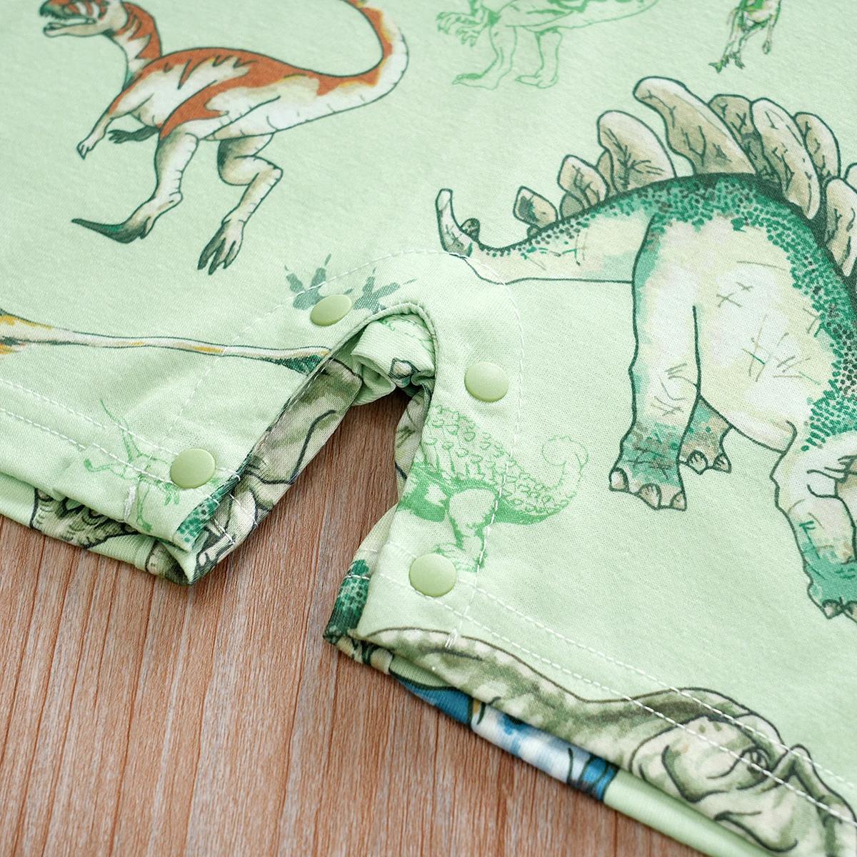 Designed with a playful dinosaur print and an easy-to-wear silhouette, this romper is a favorite for busy mornings and special occasions alike. It features a classic O-neck collar, short sleeves, and a secure covered button closure that makes dressing and diaper changes quick and hassle-free. With its modern European-American style and high-quality knit finish, it’s a practical yet trendy addition to any baby wardrobe.