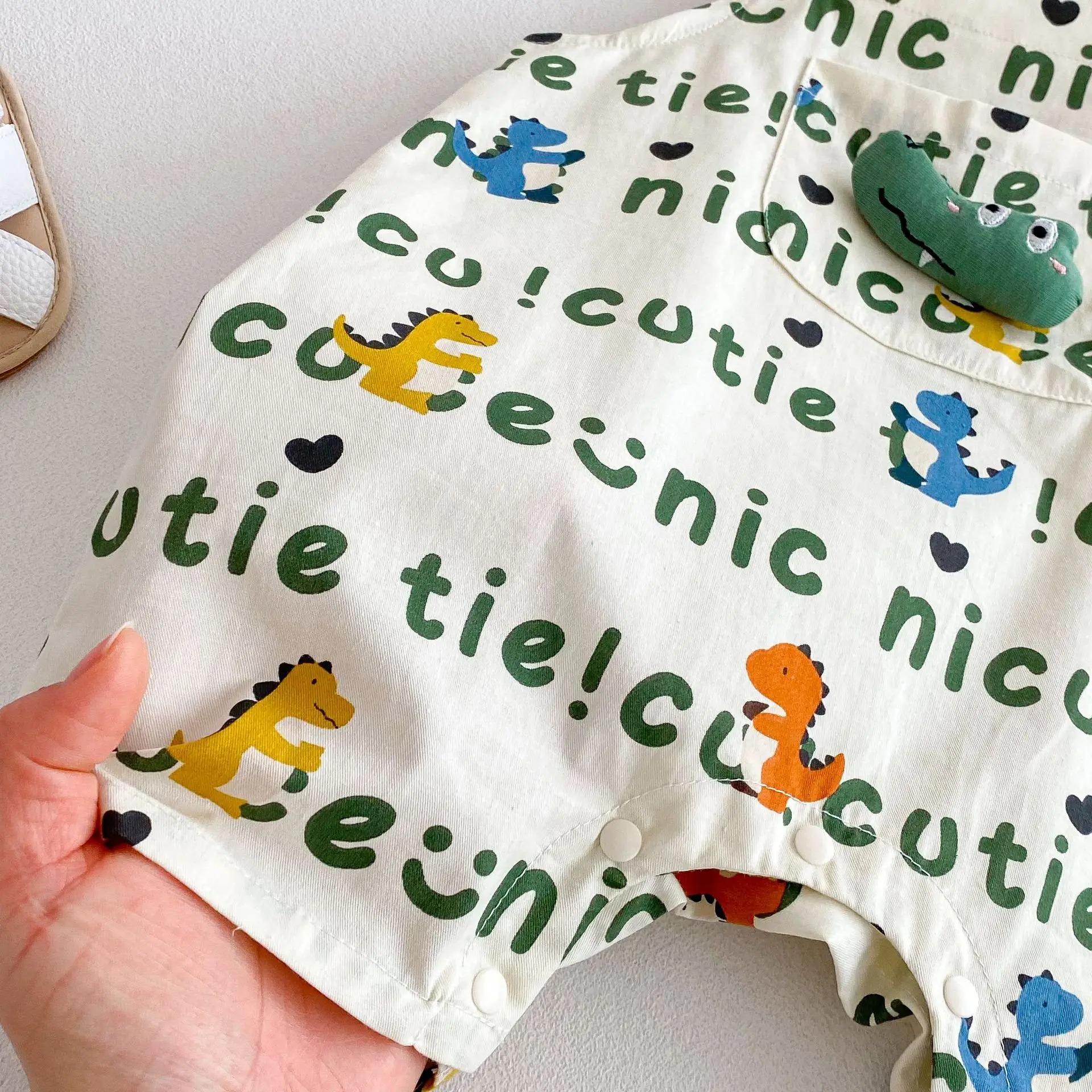 Let your little one step into the world of fun and imagination with this charming Baby Dinosaur Romper Set. Designed for boys and girls aged 0 to 3 years, this outfit is perfect for warm days and play-filled adventures. With its colorful cartoon dinosaur print and unique 3D crocodile-like detail on the pocket, it’s a trendy, cheerful addition to any toddler’s summer wardrobe.