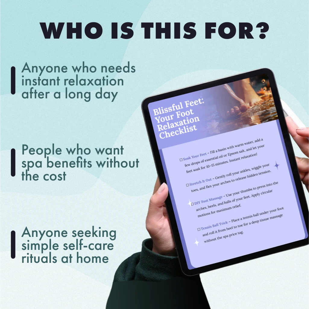Treat yourself to relaxation that lasts. Download your copy today and step into comfort with Blissful Feet: Your Foot Relaxation Checklist. Your feet will thank you—and so will your body and mind.