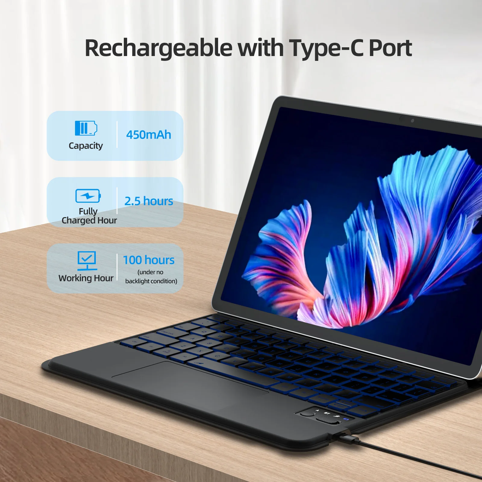 - Bluetooth backlit keyboard with multiple lighting levels