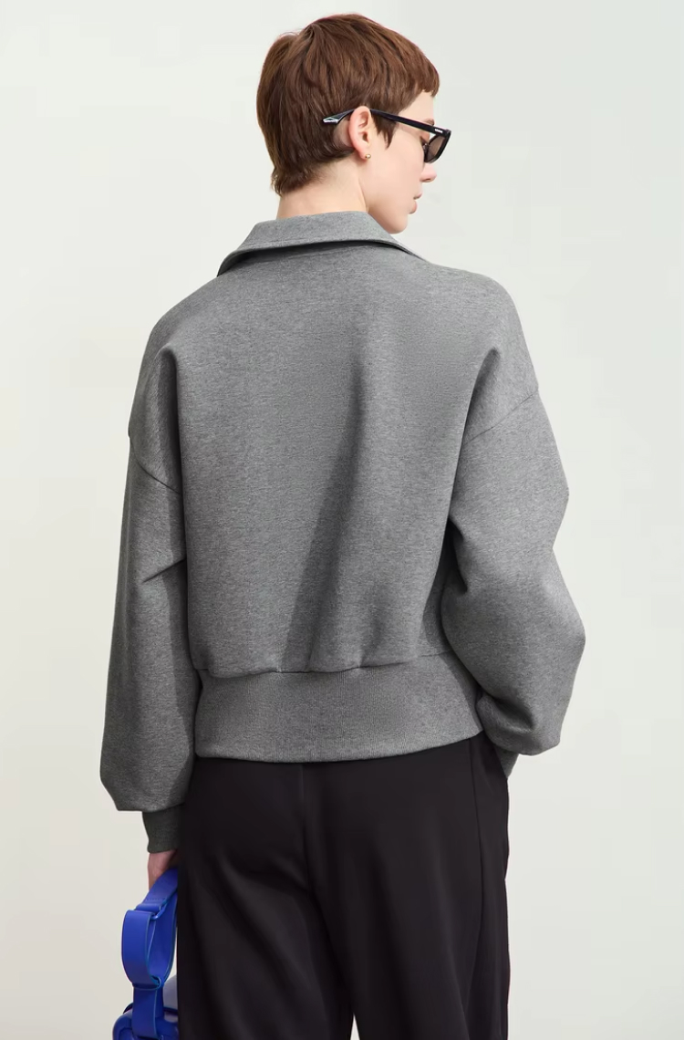 This zip-up jacket is the perfect blend of comfort and casual elegance. The turtleneck collar keeps you warm while adding a stylish touch to your look. Its lightweight yet cozy fabric ensures you stay comfortable all day long, and the loose fit provides plenty of room for layering over sweaters or T-shirts. The zipper closure offers convenience and a sleek appearance, making this jacket ideal for both casual and slightly dressy occasions.