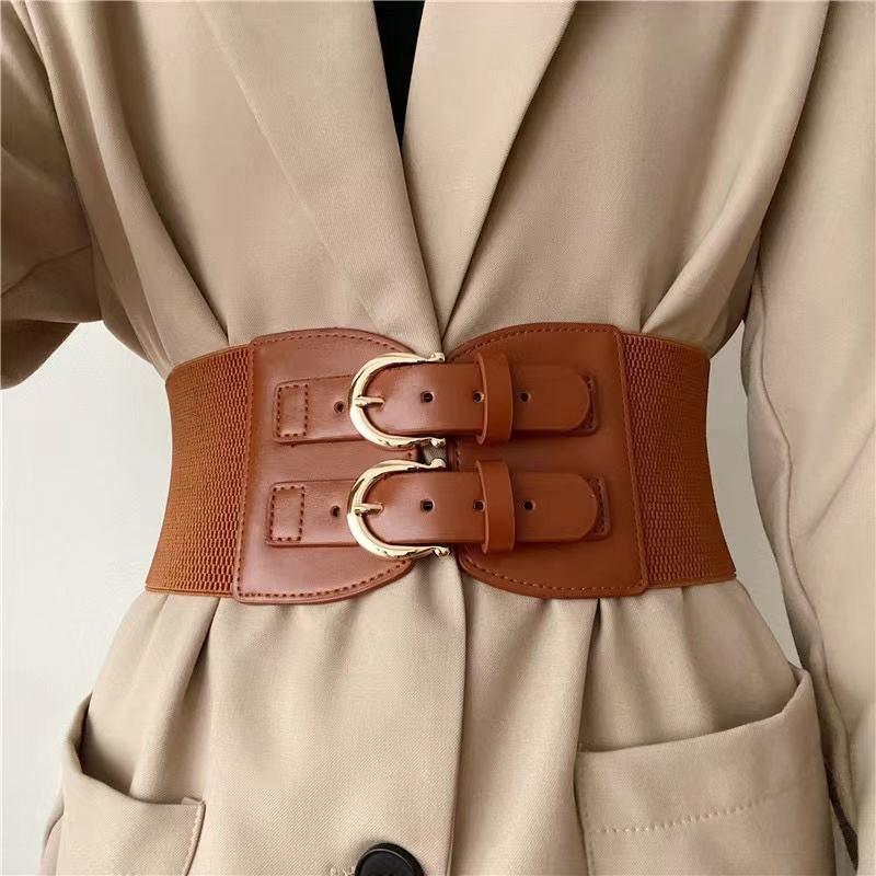 This wide, stretchy belt does more than just hold things together – it defines and enhances your waist, creating a flattering hourglass silhouette. With its retro-style buckle, this accessory adds a touch of vintage charm and personality to any look. Perfectly versatile, you can pair it with dresses, long shirts, sweaters, or high-waisted pants for a trendy, put-together finish.