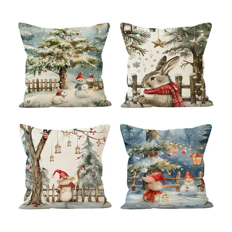 Transform your living space into a festive wonderland with our charming Christmas Linen Pillow Cover featuring a delightful snowman and rabbit design. Measuring 18 by 18 inches, this pillowcase is perfect for adding a touch of holiday cheer to your sofa, bed, or any cozy nook in your home. Made from high-quality linen, it is not only durable but also adds a soft, inviting texture to your décor.