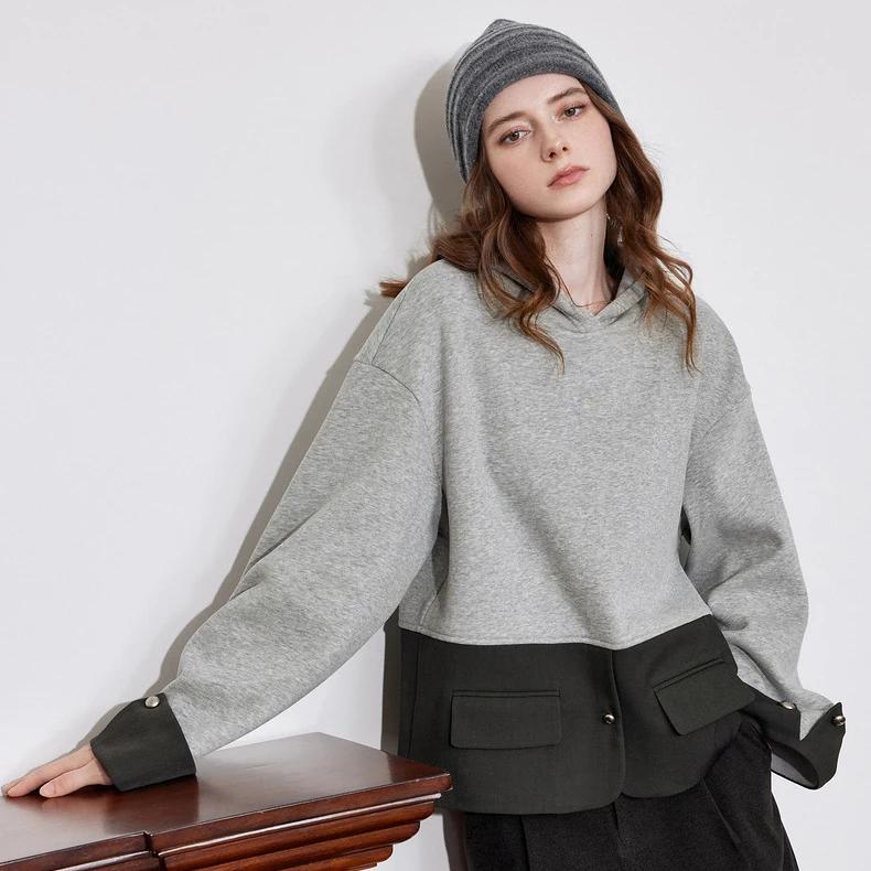 This sweatshirt is not just for staying warm – it’s about making a statement. The patchwork detailing brings a stylish twist to a classic fleece hoodie, while the loose fit provides all-day comfort. The soft cotton material feels gentle against your skin, and the hood offers extra protection against chilly winds. Whether you’re dressing it up with a skirt or pairing it with jeans, this versatile hoodie adds a pop of style to any outfit.