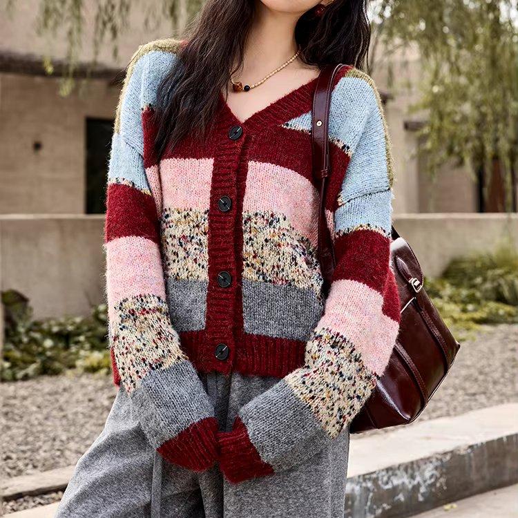 This cardigan is the ideal piece for autumn and winter. Its eye-catching contrast color stripes add a playful yet chic touch to your outfit, making it perfect for layering over a simple top or pairing with your favorite jeans. The single-breasted button design adds a touch of elegance, while the regular fit ensures it works beautifully for casual days, office wear, or even weekend getaways. Whether you’re embracing a retro-inspired style or looking for something sweet yet versatile, this cardigan has got you covered.