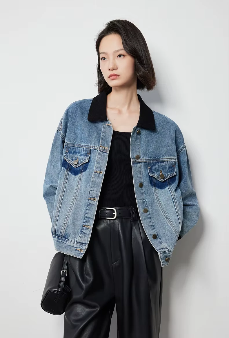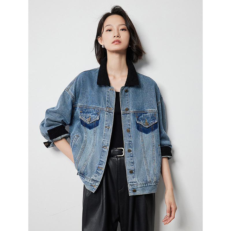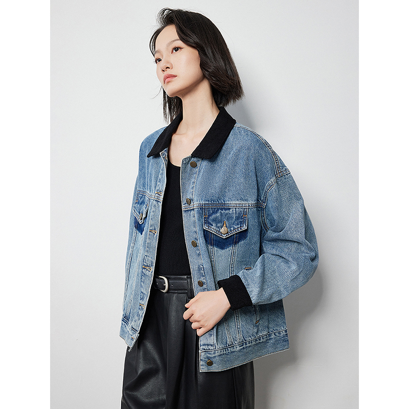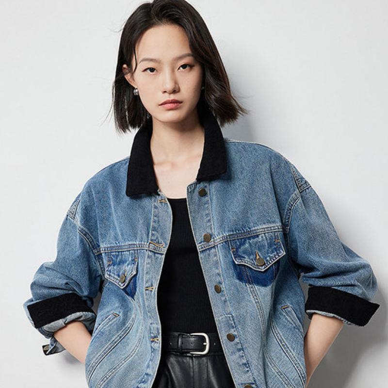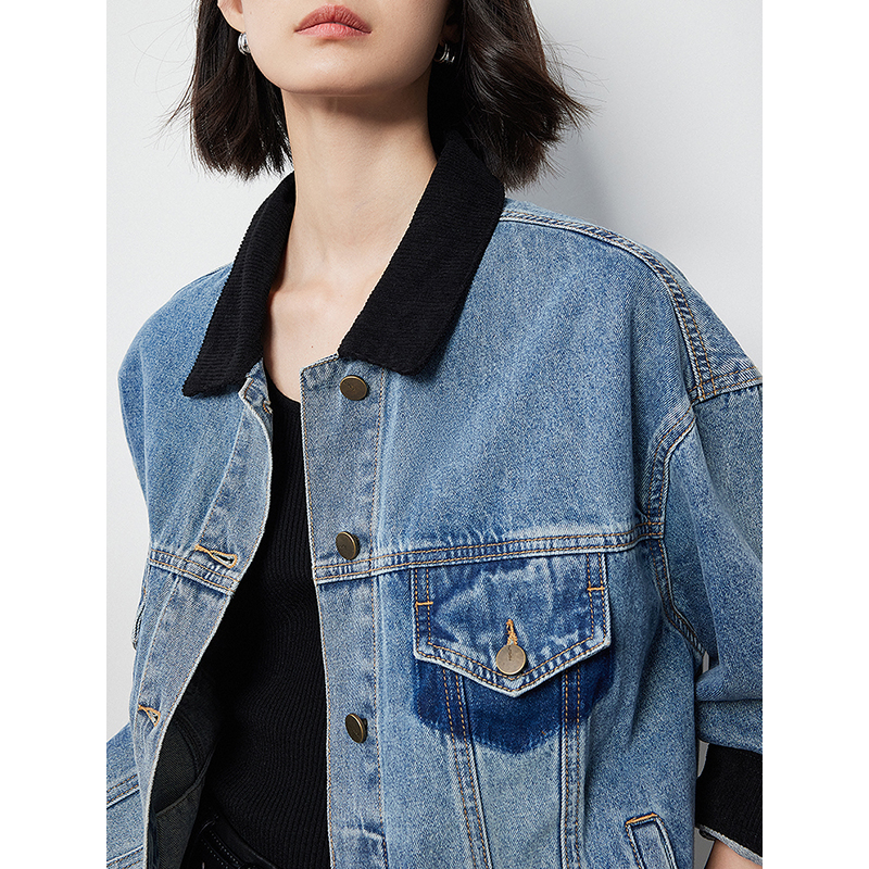 Key Features of the Contrasting Color Washed Boyfriend Denim Jacket