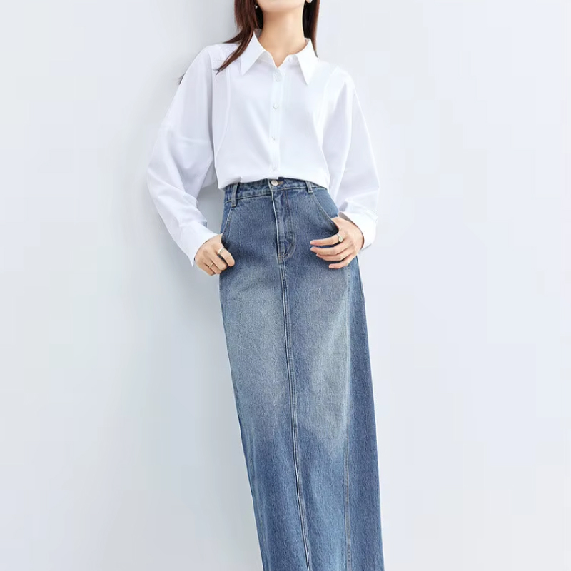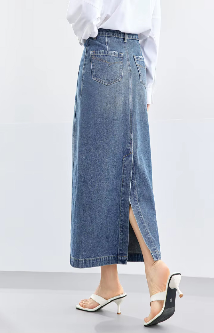 Upgrade your wardrobe with a piece that effortlessly combines comfort and sophistication. This cotton denim long skirt is designed for women who love the perfect balance between casual ease and high-fashion style. Featuring a flattering straight silhouette and a daring side slit, it is the ultimate choice for spring and autumn. Whether you’re heading out for a coffee date or a casual night out, this skirt offers both style and practicality for your every move.