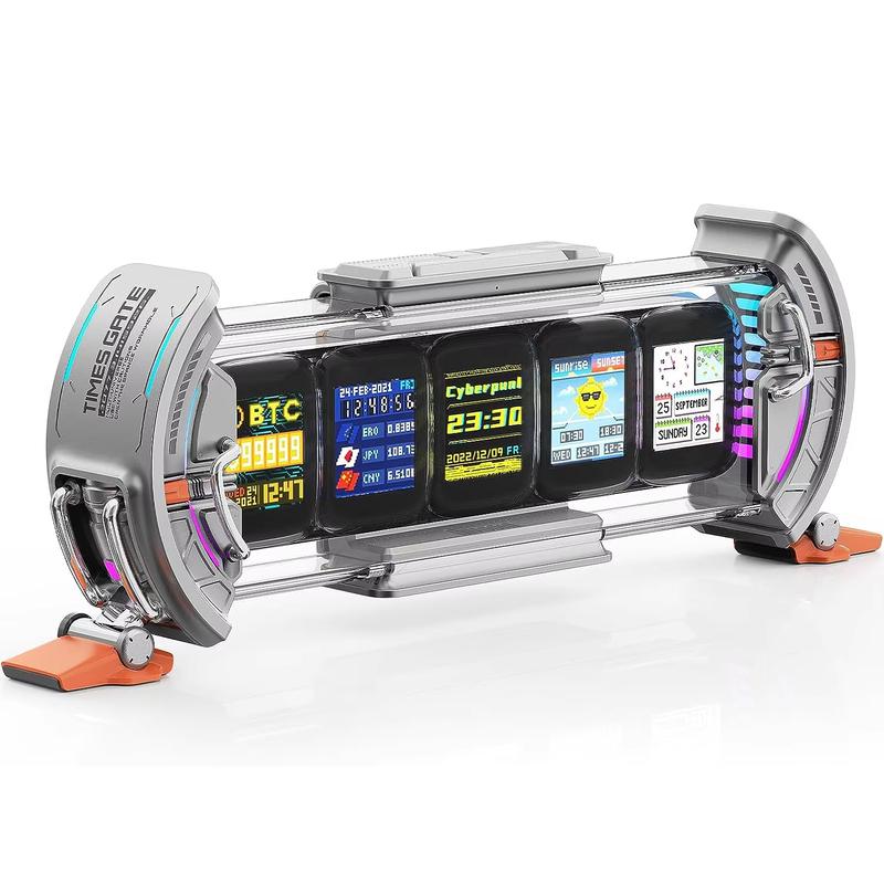 Transform your gaming room, office, or personal space into a cutting-edge technological haven with the Cyberpunk Digital Clock. Inspired by futuristic design, this sci-fi marvel features five full-color LCD displays that bring vibrant pixel art and mesmerizing lighting effects to life. Its sleek and modern aesthetic makes it the ultimate décor piece for gamers, tech enthusiasts, and anyone looking to add a splash of cyberpunk flair to their setup.
