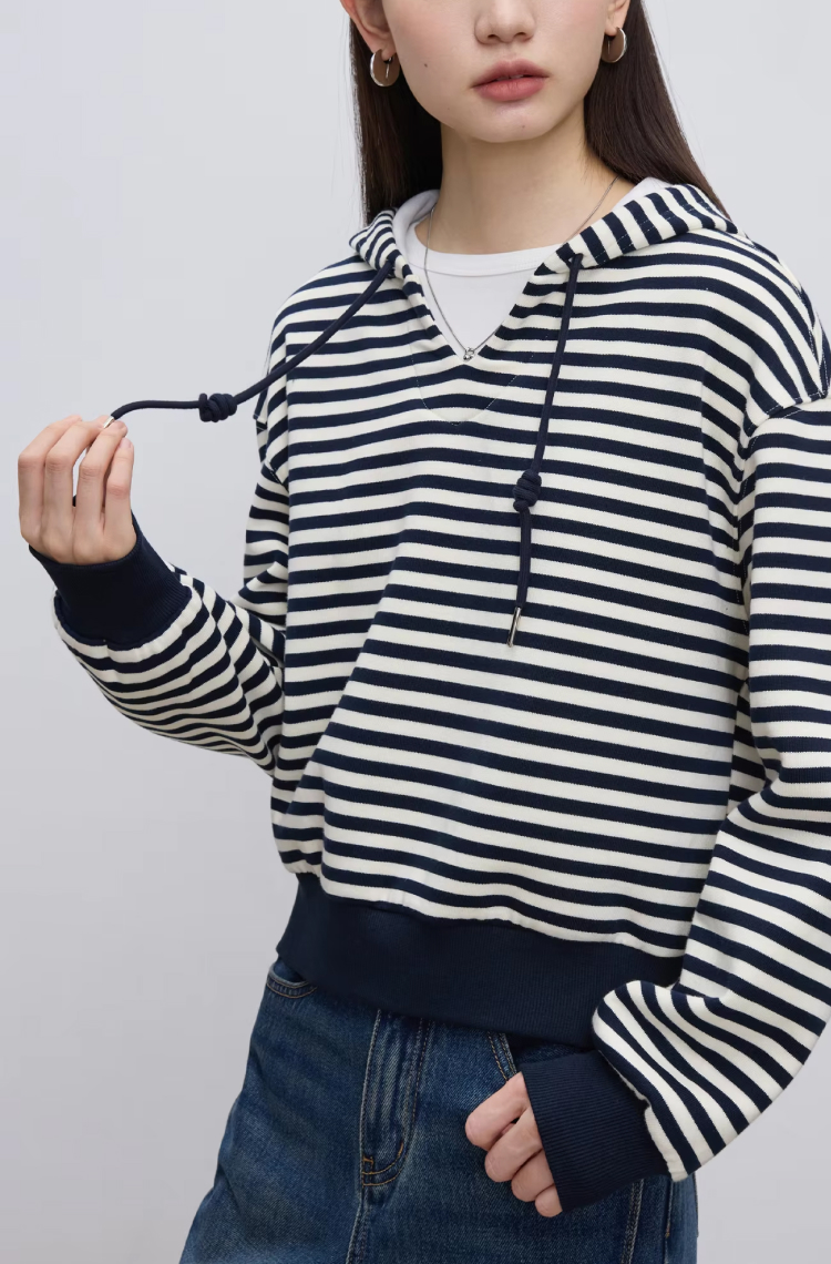 This hoodie is more than just a casual top—it’s a perfect blend of style, comfort, and practicality. The loose fit and soft cotton material make it ideal for all-day wear, while the V-neck design and striped pattern add a touch of sophistication. The drop-shoulder sleeves create a relaxed silhouette that pairs beautifully with everything from jeans to leggings. Lightweight yet warm, it’s perfect for layering over a tank top or under a jacket, ensuring you stay stylish and cozy no matter the weather.