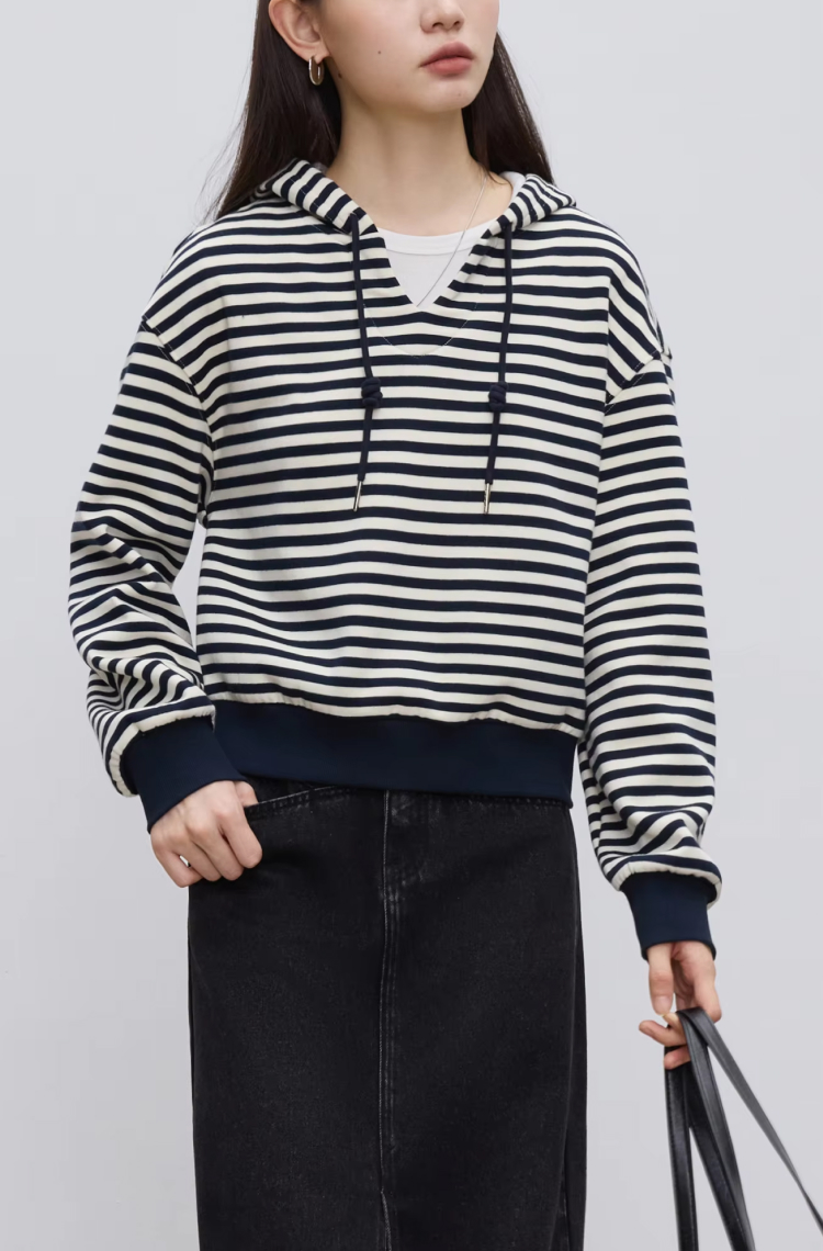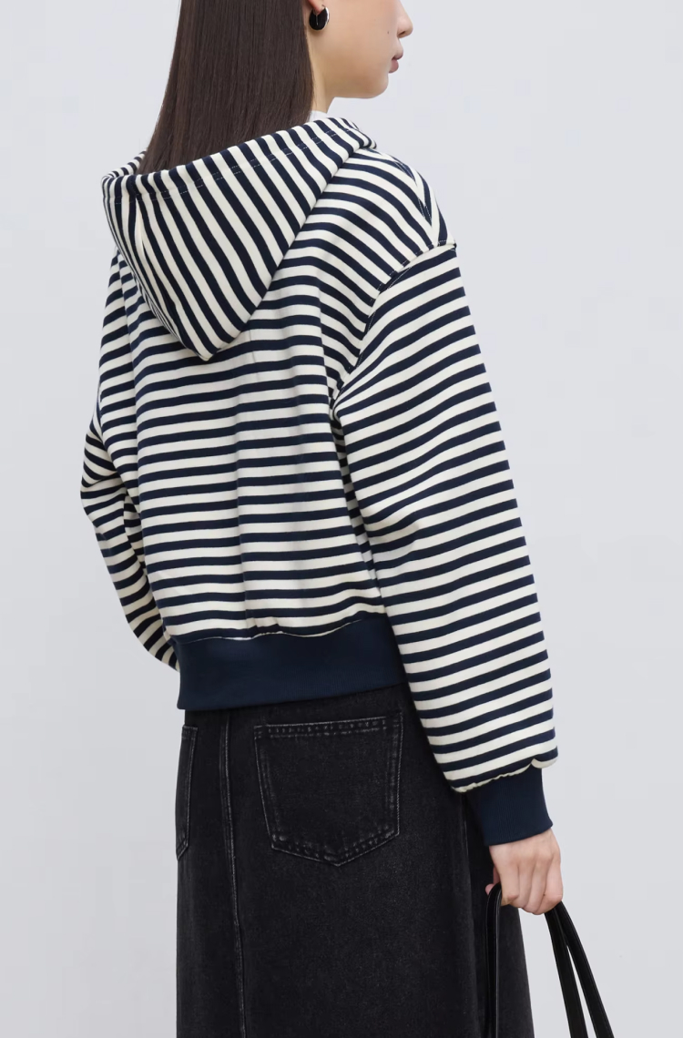 This striped hoodie is a must-have for the winter season, offering warmth without sacrificing style. It’s perfect for casual outings, running errands, or relaxing at home. Pair it with your favorite sneakers and denim for a trendy, everyday look, or layer it under a blazer for a chic, office-appropriate outfit. Its versatility and comfort make it your go-to option for a range of occasions.