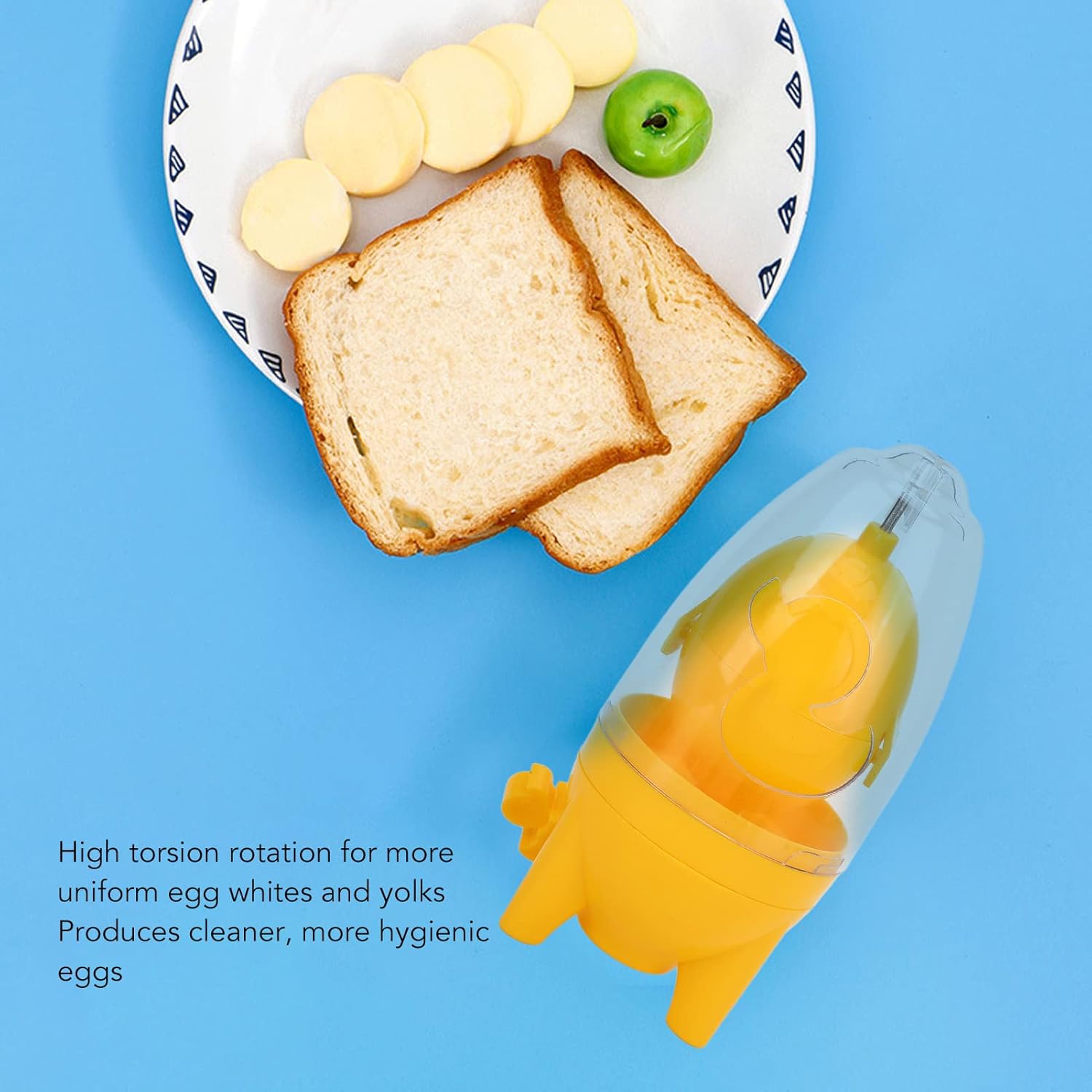 - Manual Operation: Simple pull-and-spin mechanism for easy and efficient egg mixing.