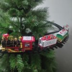 Great train for Christmas tree. Railway, along which the train with cars travels has a fairly large diameter. The chooh-the train chooks quite loudly, but never found how to turn off the sound. You will have to adapt the microbial yourself to turn off the sound. Very satisfied with the purchase. I put five stars for quality. Thank you.🌟🌟🌟🌟🌟