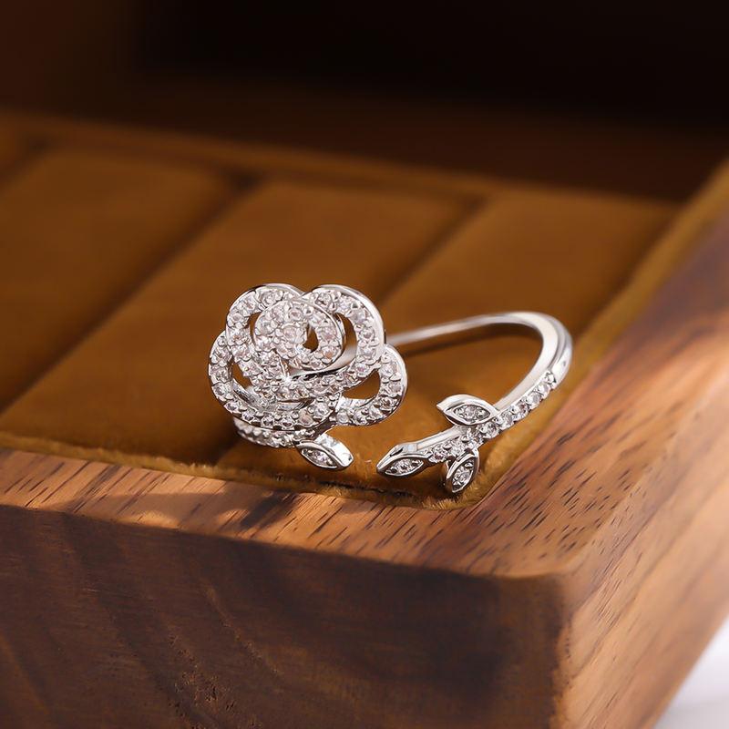 Elegant Rose Flower Crystal Ring in 925 Sterling Silver