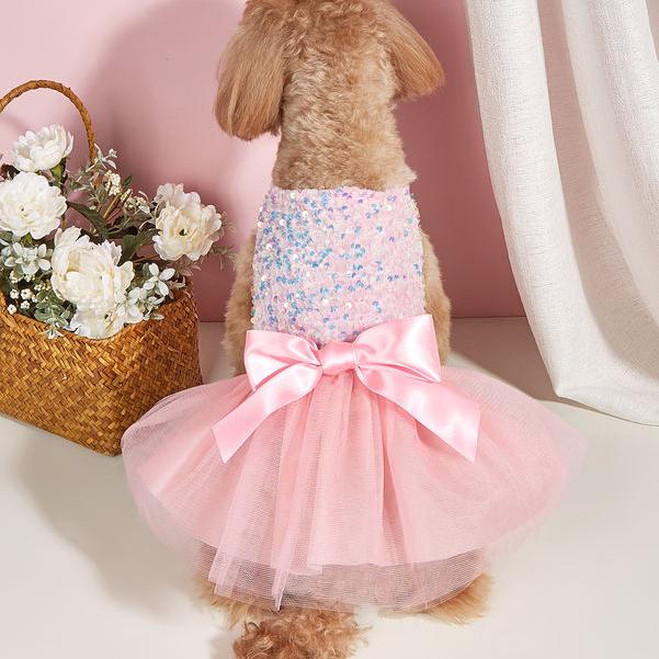 Order now and let your pet step into the spotlight with the Elegant Sequin Bowknot Dog Princess Dress with Tulle Skirt. Transform ordinary days into extraordinary moments!