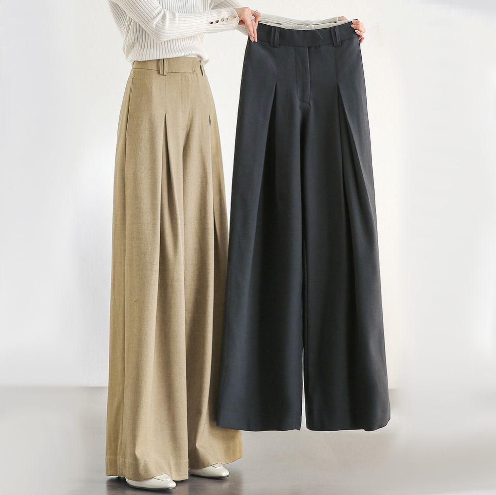 • Professional Style: Wide-leg silhouette with pleated front details for a sleek and elegant look.