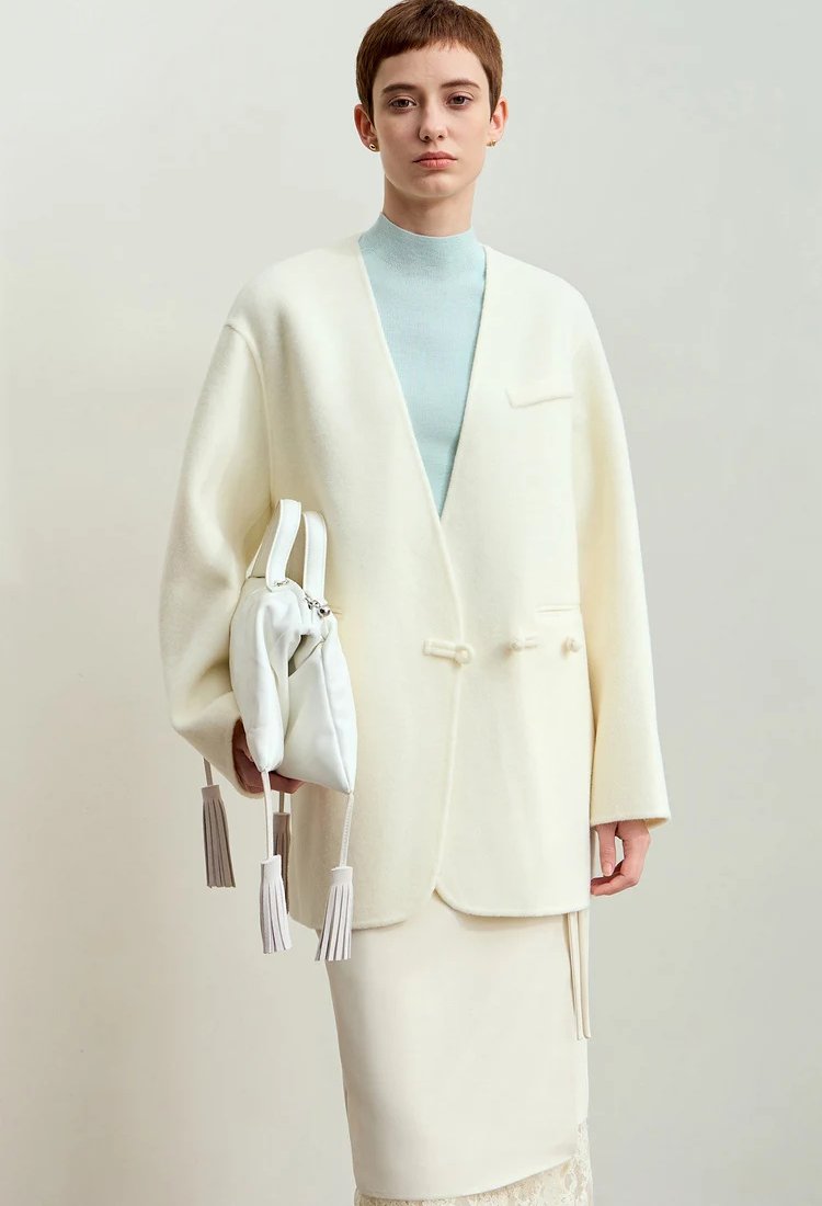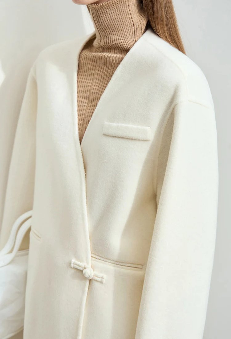 This coat stands out with its thoughtful design and impeccable craftsmanship. From its flattering V-neck collar to its practical detailing, it’s a piece you’ll treasure in your wardrobe: