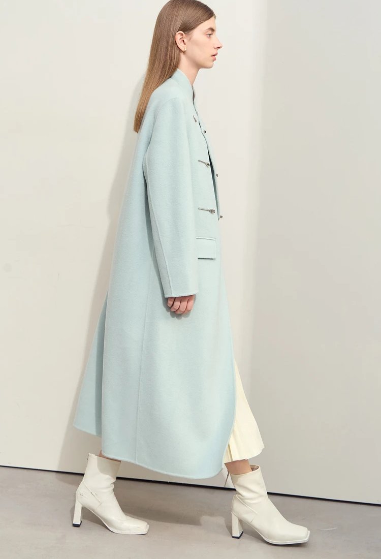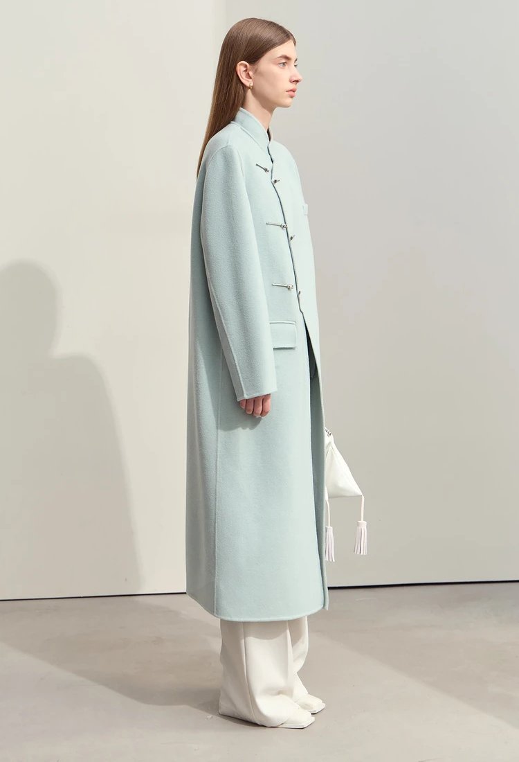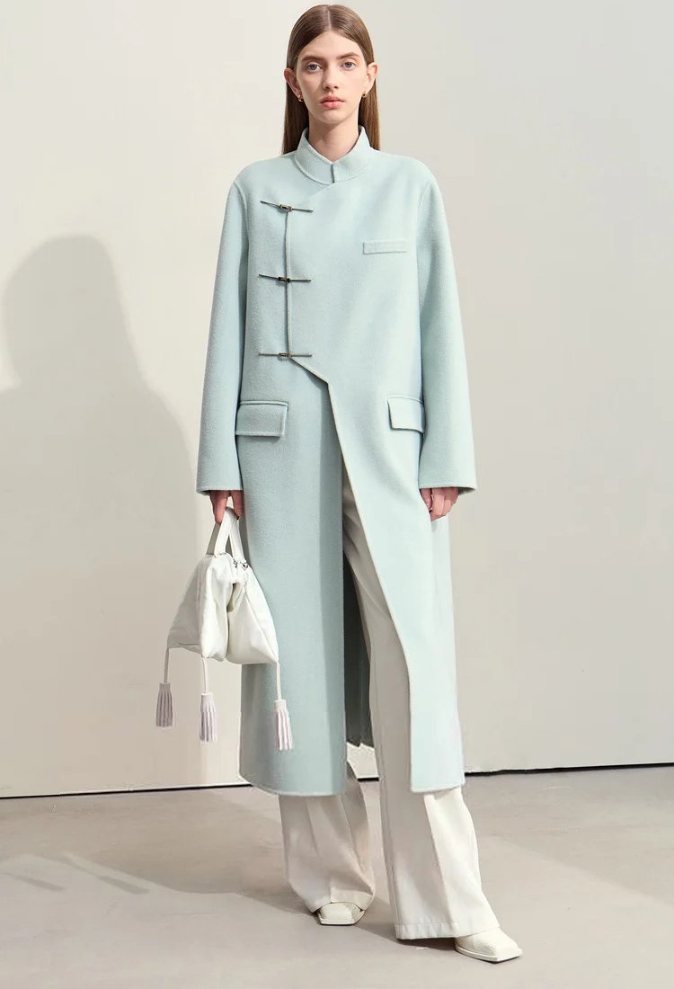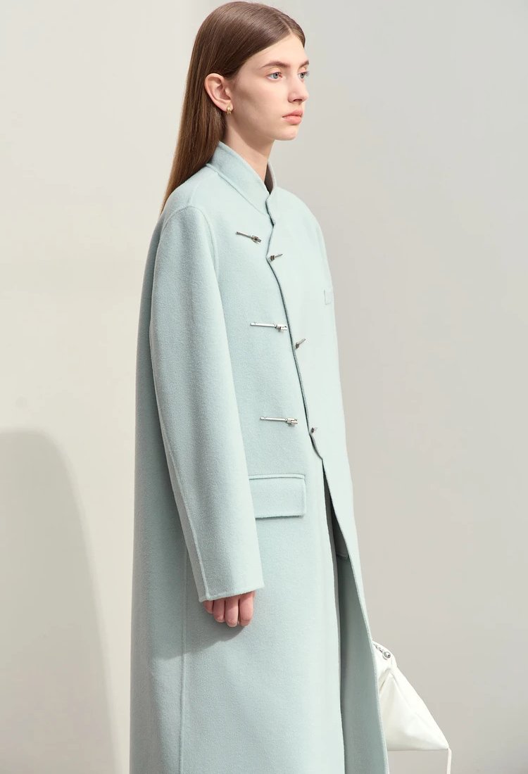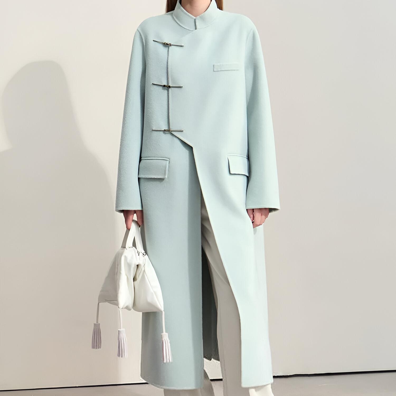 This coat isn’t just a piece of outerwear—it’s a statement. Its flowing, loose fit ensures comfort while exuding effortless elegance. The mandarin collar and understated decorative details set it apart from ordinary winter coats, making it a standout choice for office wear, formal occasions, or casual outings. The 100% wool composition ensures premium quality, offering excellent insulation without the bulk. Plus, the long length adds drama and sophistication to your winter wardrobe.