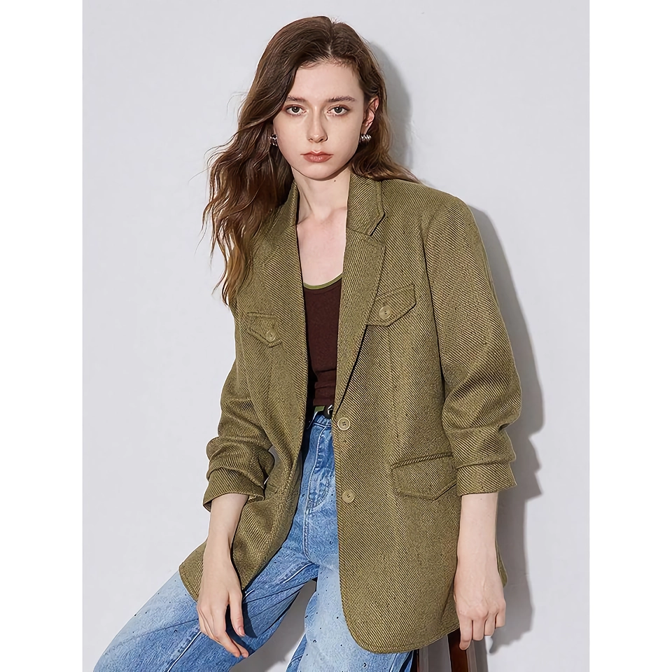 What sets this blazer apart is its blend of timeless style and practical features. The twill fabric offers a refined texture, while the solid pattern ensures a classic aesthetic that complements any outfit. The x-long length adds drama and sophistication, making it a statement piece in your wardrobe. Whether paired with tailored pants or a chic dress, this jacket is a versatile choice that elevates your fashion game.