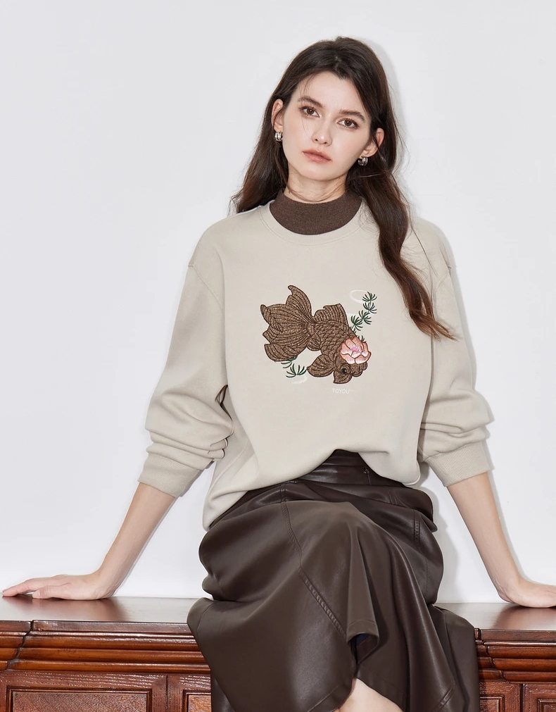 Embrace the chill in style with this beautifully crafted Fish Animal Pattern Pullover Sweatshirt, perfect for the cooler seasons. Designed with autumn and winter in mind, this unique piece blends comfort, warmth, and playful originality. The charming embroidery adds a touch of artistry, while the loose fit ensures you stay comfortable all day long. Whether you’re heading to the office or meeting friends for a casual outing, this sweatshirt is versatile enough for any occasion.