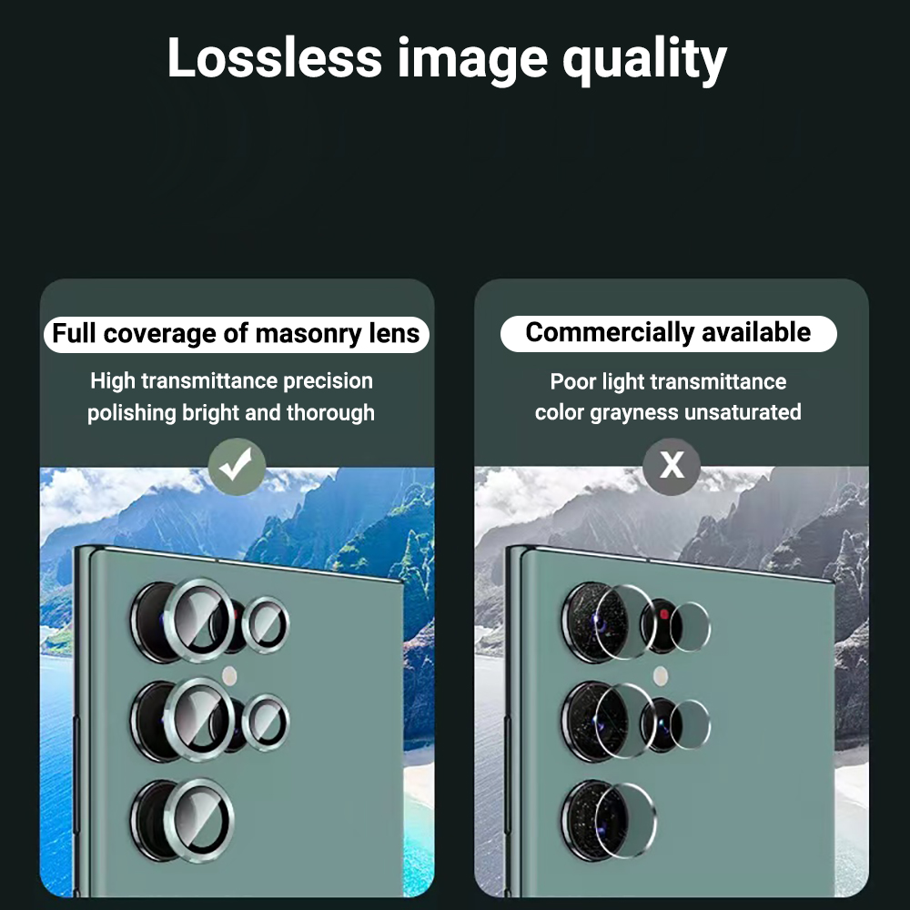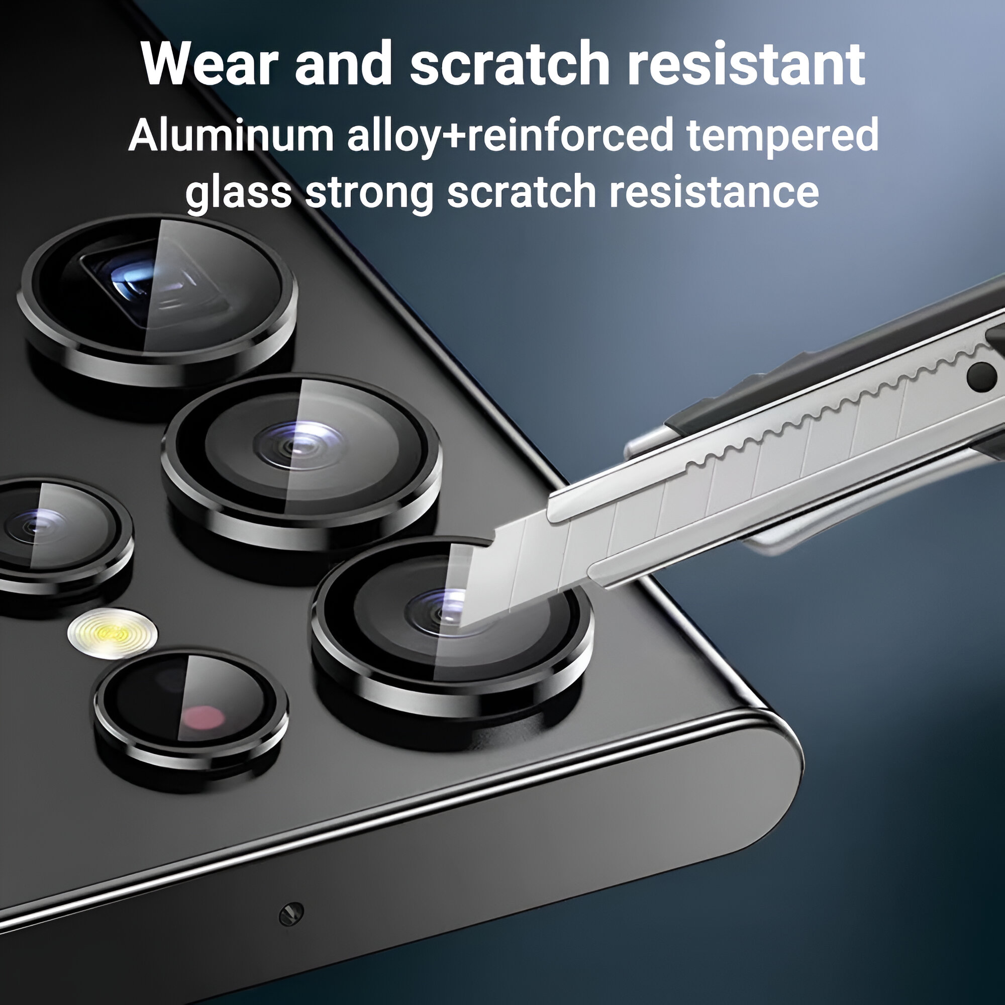 Keep your Samsung Galaxy camera looking pristine with our Full Cover Camera Lens Protector, designed specifically for the S24, S23, and S22 Ultra and Plus models. This metal protective glass cover shields your camera lens from scratches, dust, and impact, allowing you to take stunning photos without worrying about damage. With a sleek fit and premium materials, this lens protector is a must-have accessory for any photography enthusiast or everyday user.