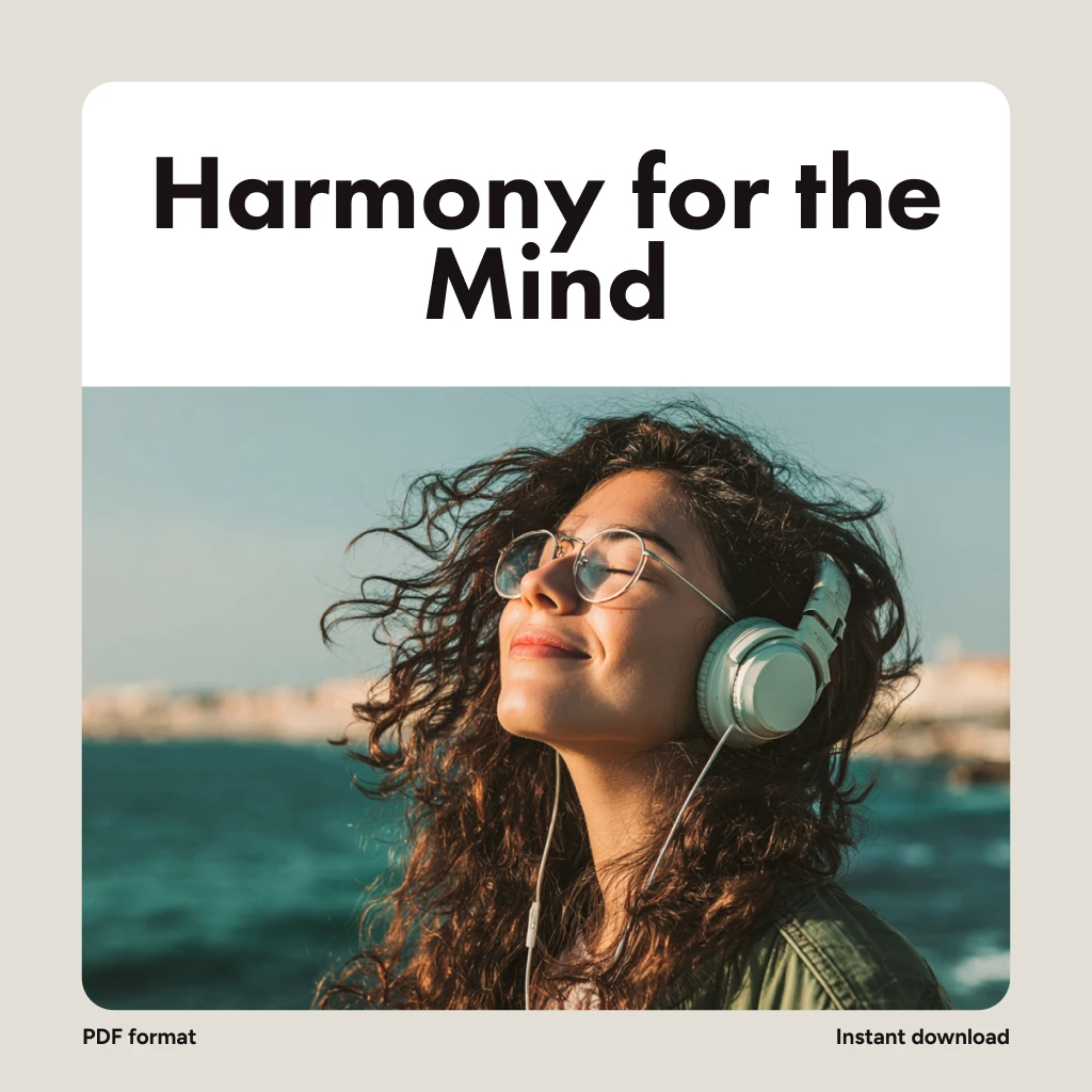 Imagine having a simple, enjoyable way to quiet your thoughts, ease anxiety, and restore balance—anytime, anywhere. Harmony for the Mind: Using Music to Melt Stress and Anxiety is a beautifully designed digital guide that shows you how to harness the healing power of music to relieve stress and anxiety. Whether you’re feeling overwhelmed, struggling with focus, or simply want to create a more mindful daily routine, this resource helps you unlock music’s hidden potential for emotional well-being.