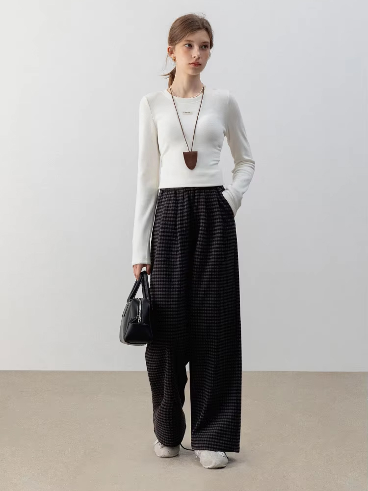Whether you’re dressing them up with a blouse and heels or keeping it casual with a sweater and flats, these versatile pants can be styled for any occasion. The timeless plaid pattern gives them a classic appeal, while the modern cut ensures they stay on trend. These pants are perfect for women who want to stay stylish and comfortable during the colder months without compromising on elegance.