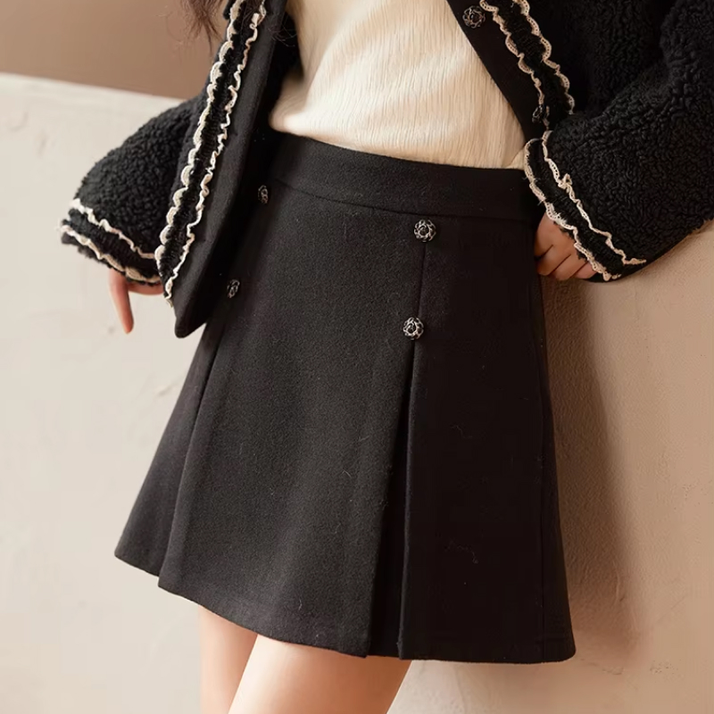 The combination of high-quality materials, a timeless design, and functional details sets this tweed skirt apart. The fabric’s woven texture is not only stylish but also provides warmth, making it ideal for the cooler months ahead. The carefully crafted folds add a unique touch, elevating it beyond a simple wardrobe staple. Whether you’re aiming for sophistication or effortless elegance, this skirt offers both in a comfortable, easy-to-wear package.