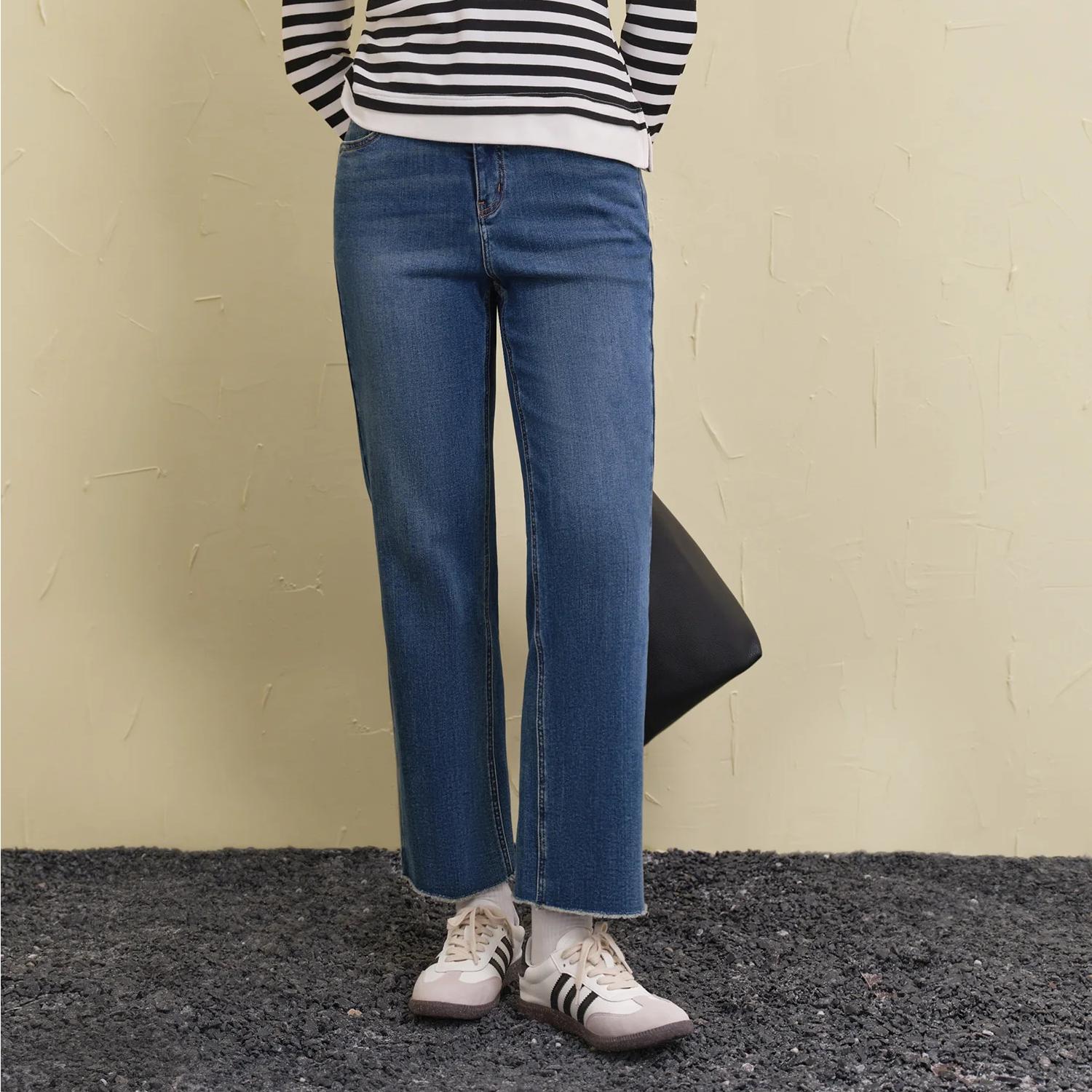 The ankle-length cut is especially great for showcasing your favorite footwear, and the functional pockets add a practical touch. The slight stretch fabric provides just the right amount of flexibility, allowing you to move freely throughout the day. These jeans are designed for women who value both style and comfort, offering an effortlessly chic look for any occasion.