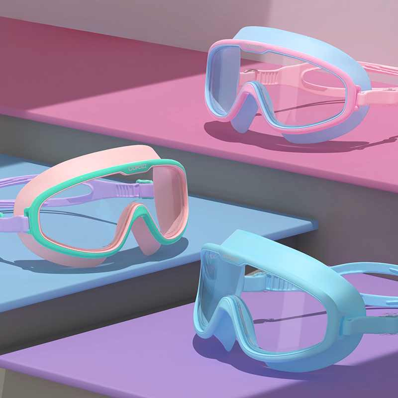 These children’s swim goggles are built with both performance and comfort in mind. The soft silicone frame fits snugly but gently around the eyes, while the adjustable strap ensures a perfect fit for growing swimmers. The oversized lenses made from durable polycarbonate provide excellent visibility underwater and help reduce glare above the surface. Designed for kids who love the water, these goggles make swimming safer and more fun.