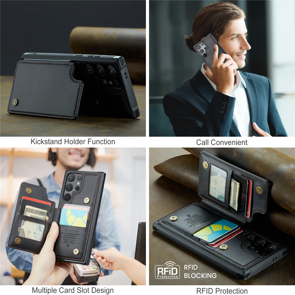 Leather Kickstand Wallet Case with Card Slots for Samsung Galaxy