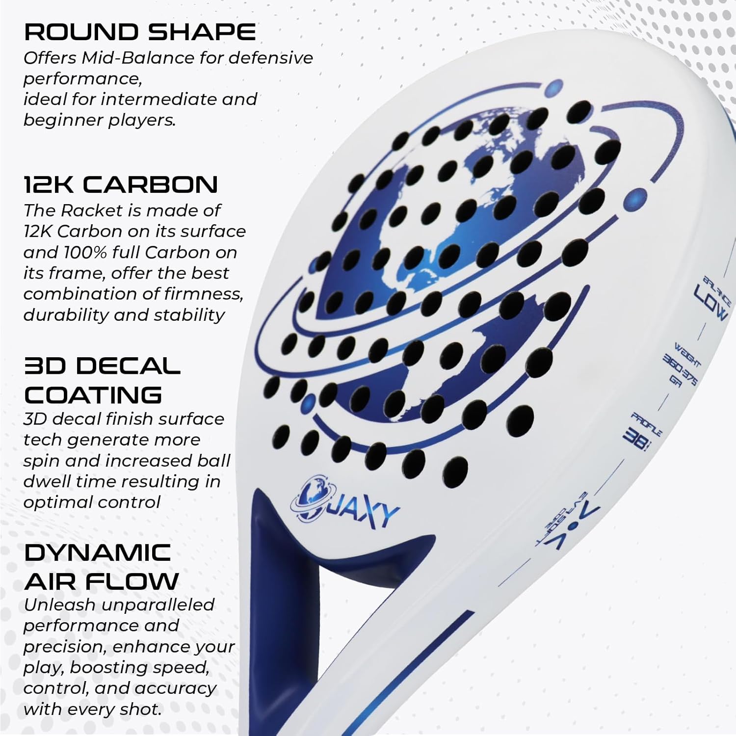- Full Carbon Fiber Surface: Offers superior durability and a crisp hitting feel