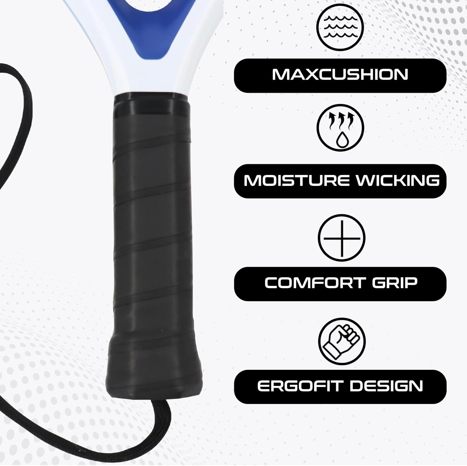 - EVA Memory Flex Foam Core: Absorbs shock and enhances comfort during long rallies