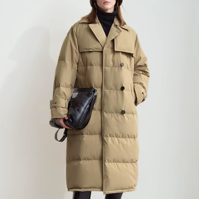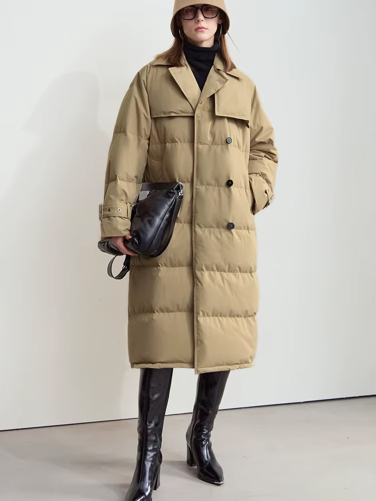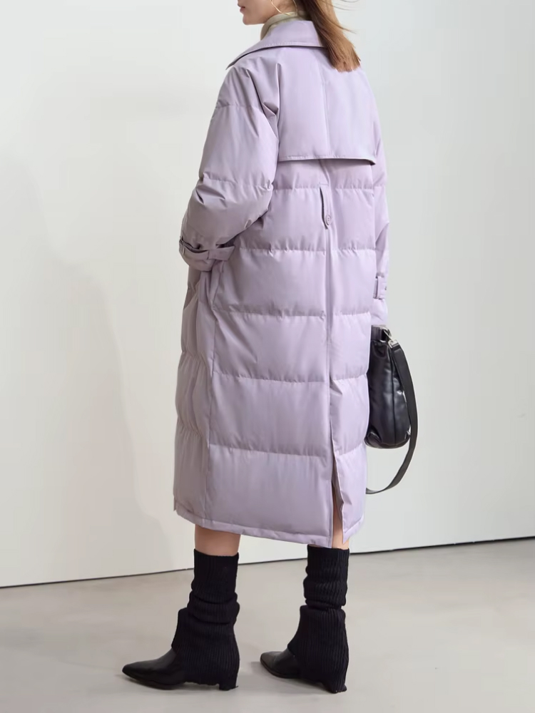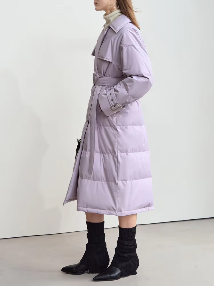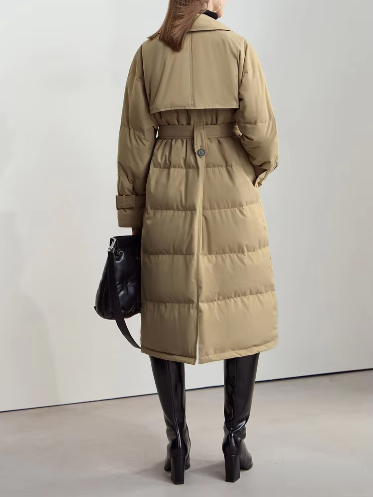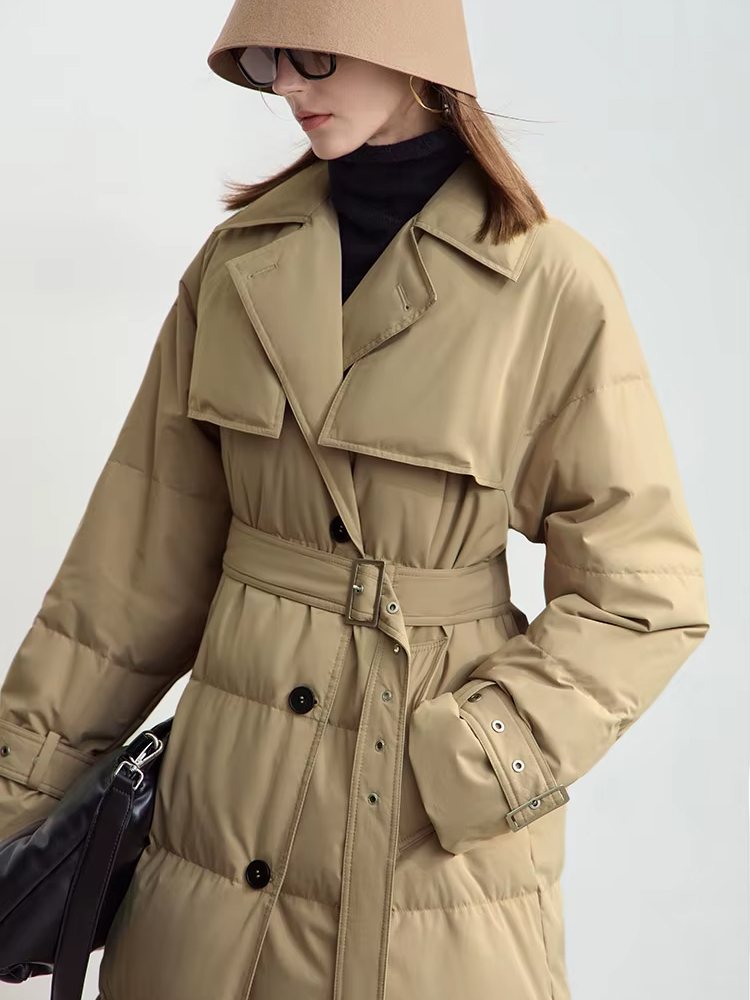 Embrace the winter season with confidence in this stunning long trench coat down jacket. Designed for women who value both comfort and style, this coat offers a perfect blend of warmth, practicality, and sophistication. Featuring a sleek solid color and thickened white duck down filling, this coat will keep you cozy on even the coldest days. Its graphene lining enhances insulation, making it your go-to jacket for chilly mornings and freezing evenings. Whether you’re commuting to work, strolling through the city, or attending a winter event, this jacket will provide the perfect balance of style and function.