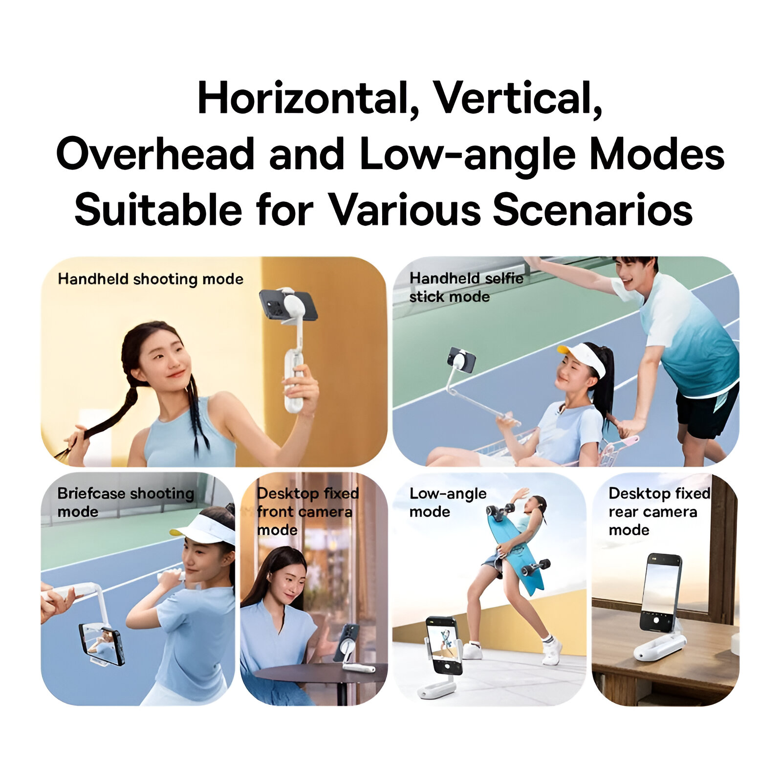 - Low-Angle Mode & Briefcase Mode: Achieve unique perspectives for dance, skating, and action shots.