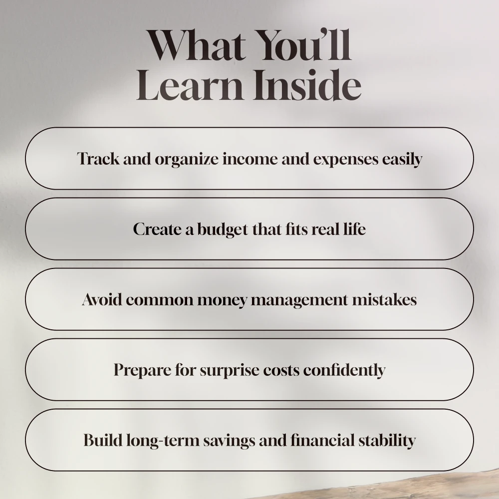 With practical steps, real-world examples, and an easy-to-follow format, this eBook simplifies every part of the budgeting process. You’ll walk away with a clear household budget plan and the confidence to stick with it.