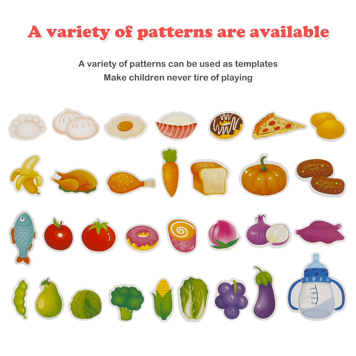- Vibrant food pieces – Captivate attention and encourage choice-making