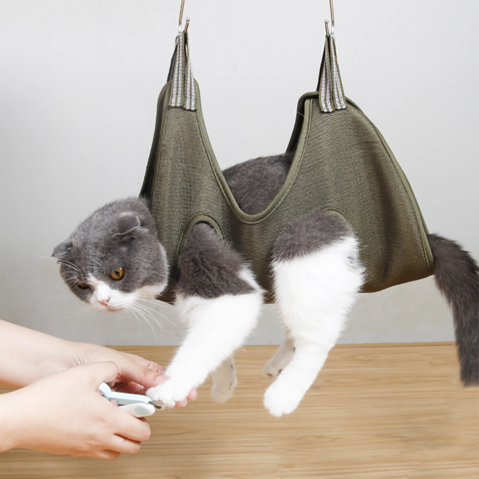 To use the grooming hammock, simply place your pet’s legs through the designated openings and secure the hammock on a suitable stand or hook. This hammock is perfect for routine grooming tasks, especially when your pet tends to move around. It can also help reduce stress and anxiety by creating a secure environment. Use it during bath time, nail trimming sessions, or even quick cleanups to ensure both safety and comfort for your furry friend.