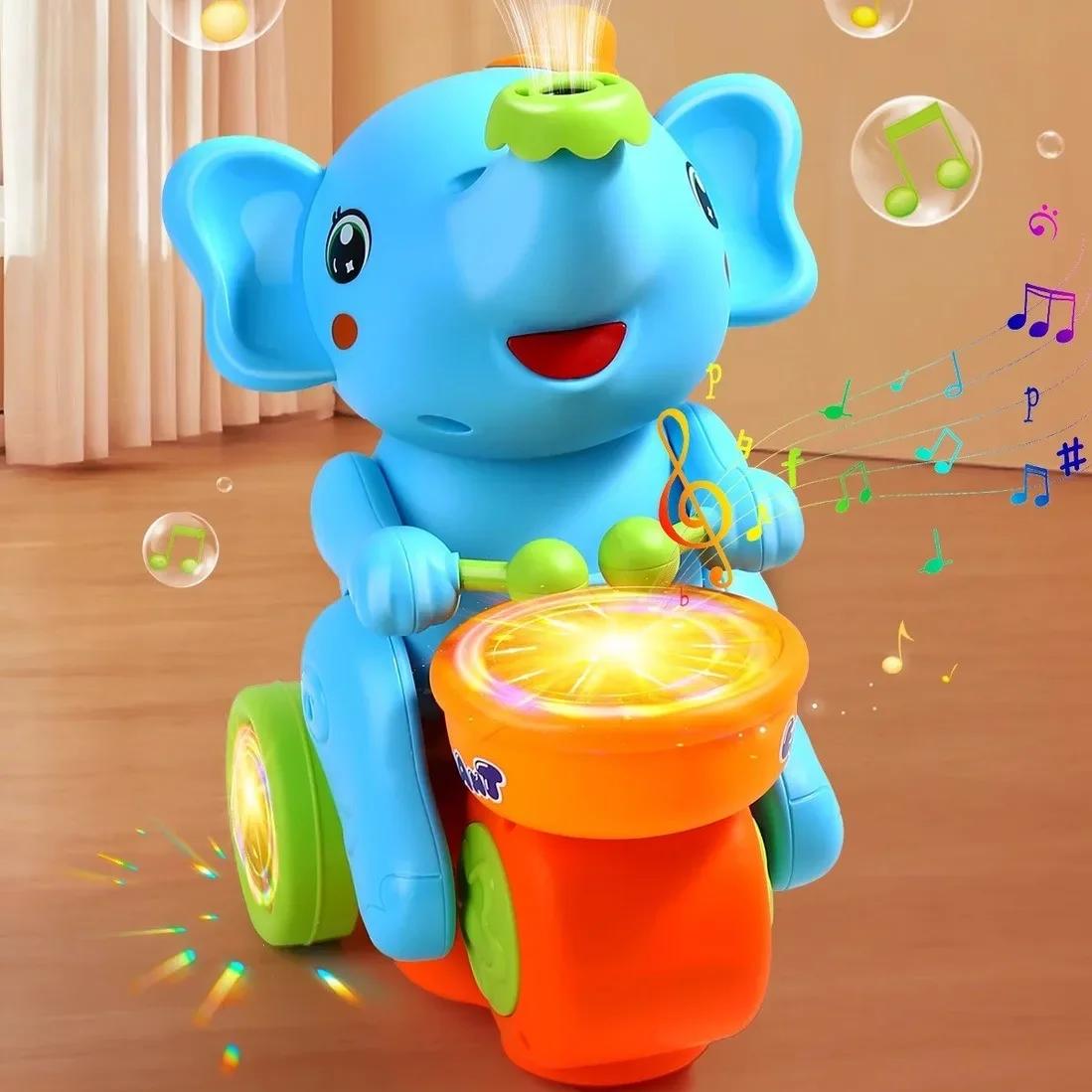 This adorable elephant toy doesn’t just walk—it entertains, engages, and educates. The rhythmic drumming, flashing lights, and vibrant colors stimulate your child’s developing senses, while the soft melodies offer a soothing auditory experience. Whether it’s tummy time, crawling practice, or a spontaneous dance party in the living room, this toy is perfect for babies and toddlers alike.