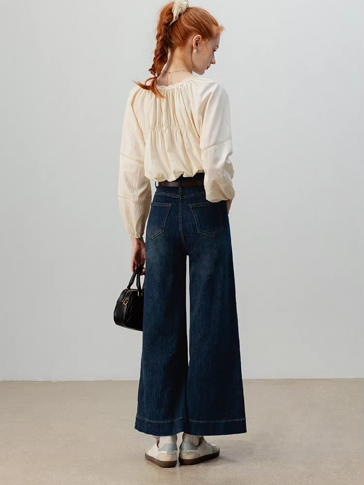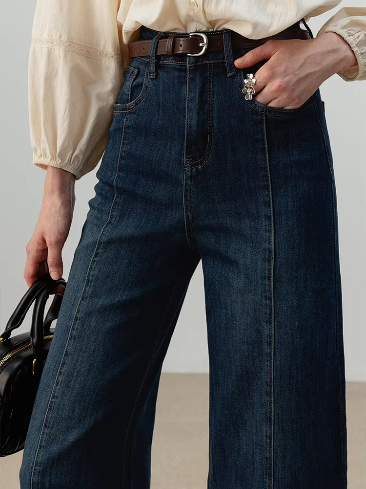 Made from a durable and breathable cotton-elastic denim blend, these pants keep you comfortable in any weather. The pocket detailing not only adds style but also offers functionality for storing small items like your phone or keys. The zipper fly ensures a perfect fit, while the ankle-length cut allows you to showcase your footwear, whether it’s sneakers, heels, or boots. With their retro-inspired design and timeless color, these pants are destined to become a staple in your wardrobe.