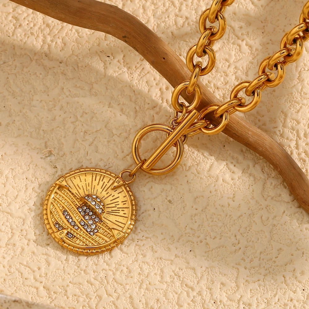 Make a bold and elegant statement with the OT Buckle Round Sunrise Pendant Necklace. Designed to captivate with its unique round pendant and luxurious 18K gold plating, this piece exudes modern sophistication. Made from durable 316L stainless steel, it’s perfect for women who love exaggerated yet classy accessories. Whether you’re dressing up for a special occasion or adding flair to your daily wear, this necklace is your ultimate fashion companion.