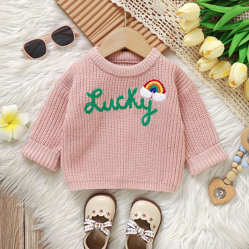 Pink Baby Knit Sweater – Long Sleeve Embroidered Pullover for Girls