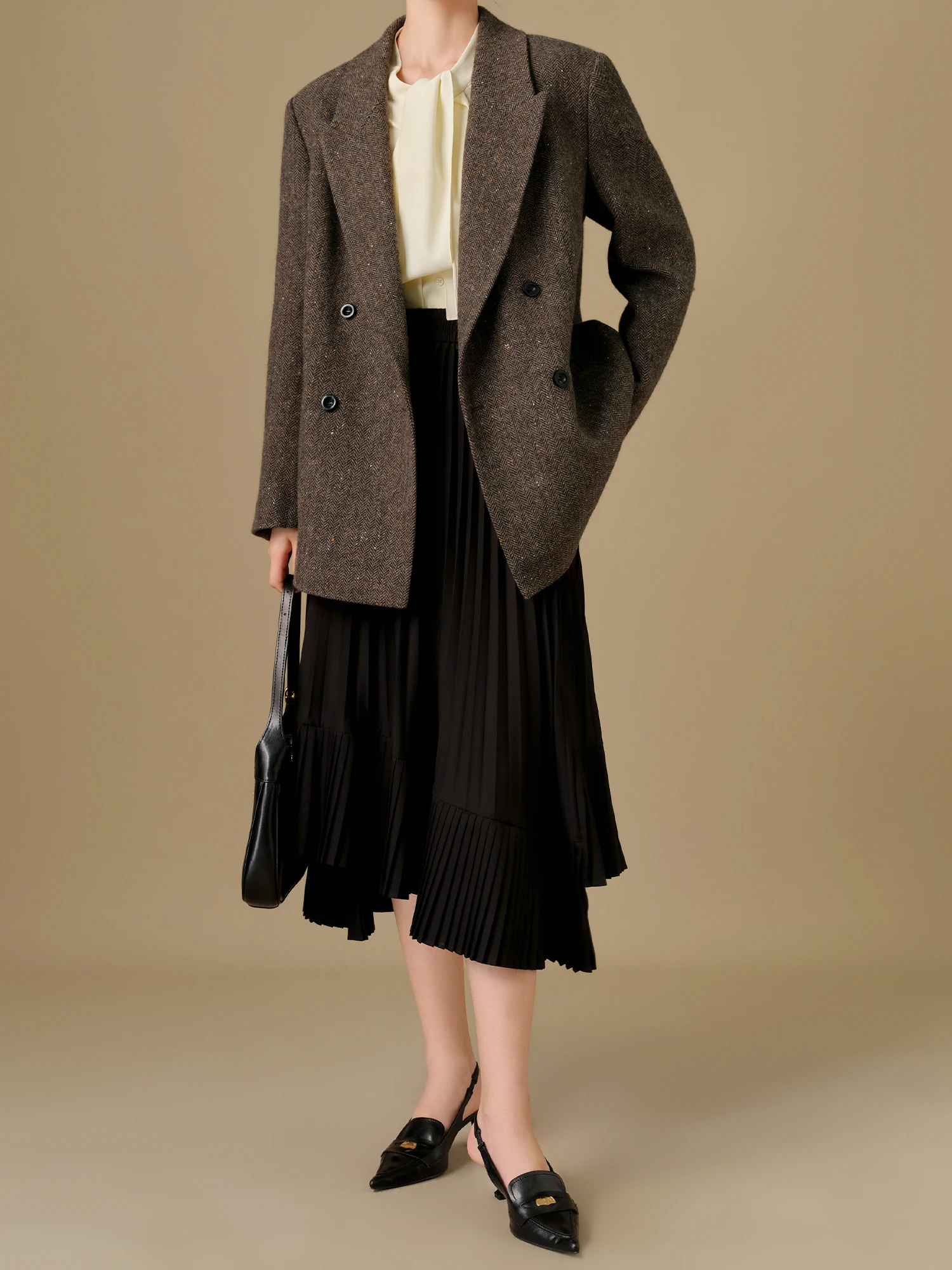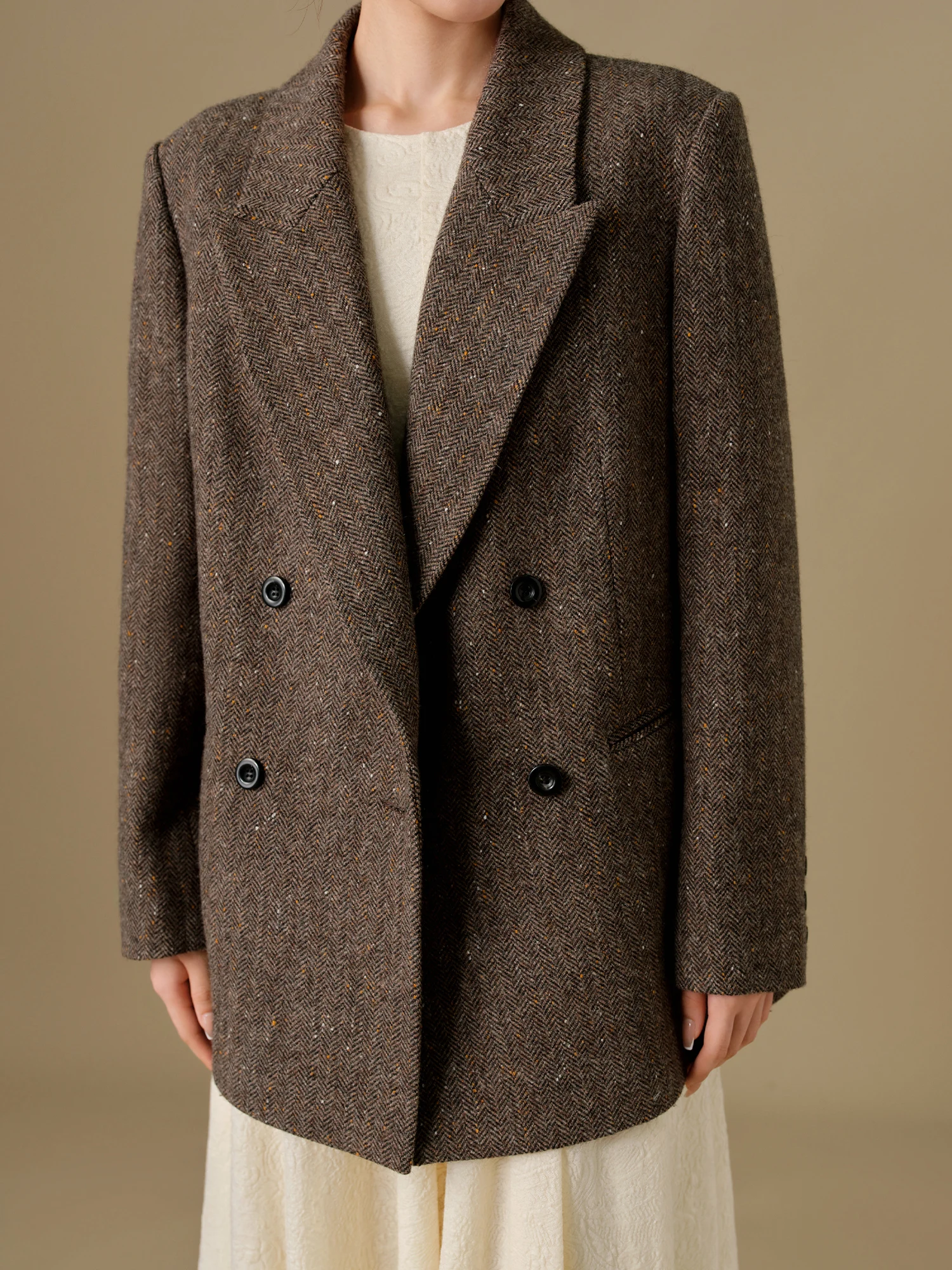 This wool blend coat is more than just a piece of outerwear – it’s a statement. Perfect for chilly winter days, it combines warmth with a fashionable design, making it easy to layer over both casual and dressy outfits. The 98.8% sheep wool ensures that you stay warm without sacrificing comfort, while the durable polyester blend helps the coat maintain its shape season after season. The unique dot pattern adds a touch of personality, while the soft brown color pairs beautifully with any wardrobe. Whether you’re attending a holiday party or simply going out for a walk, this coat will keep you cozy and stylish all day long.